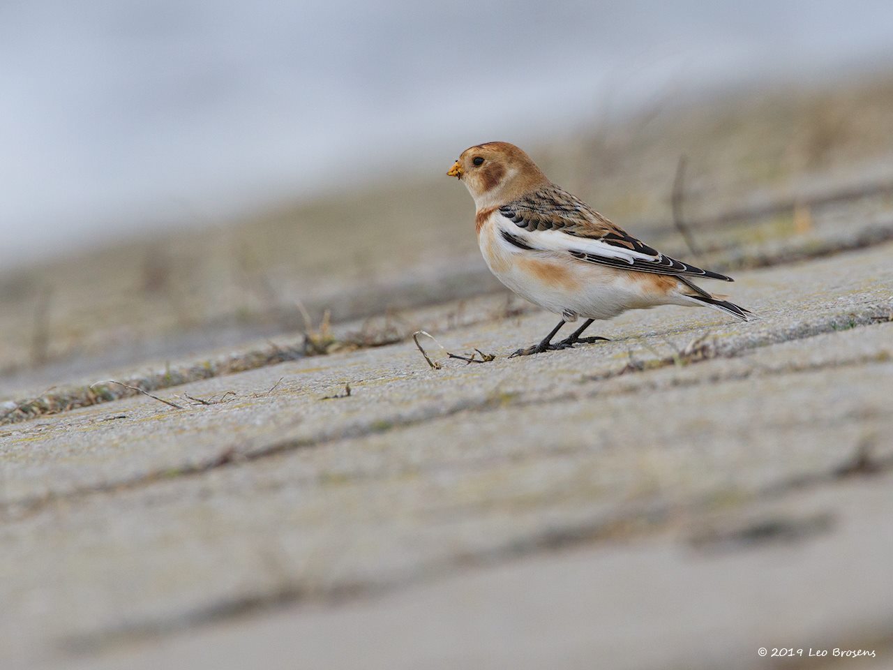 In december gespot op de Oesterdam. Niet dit jaar maar weer een tijdje terug maar met geluk zou je er nog een enkele kunnen tegen komen daar. Sneeuwgorzen uit noordelijke gebieden van IJsland tot Rusland bezoeken ons land van half september tot begin april. De najaarstrek is het sterkt tussen half oktober en eind november. De aantallen overwinteraars verminderen na januari terwijl van voorjaarstrek weinig gemerkt wordt. De Sneeuwgors is sterk gebonden aan de kust en de grootste groepen worden gezien in het Waddengebied. De landelijke aantallen schommelen van jaar tot jaar.