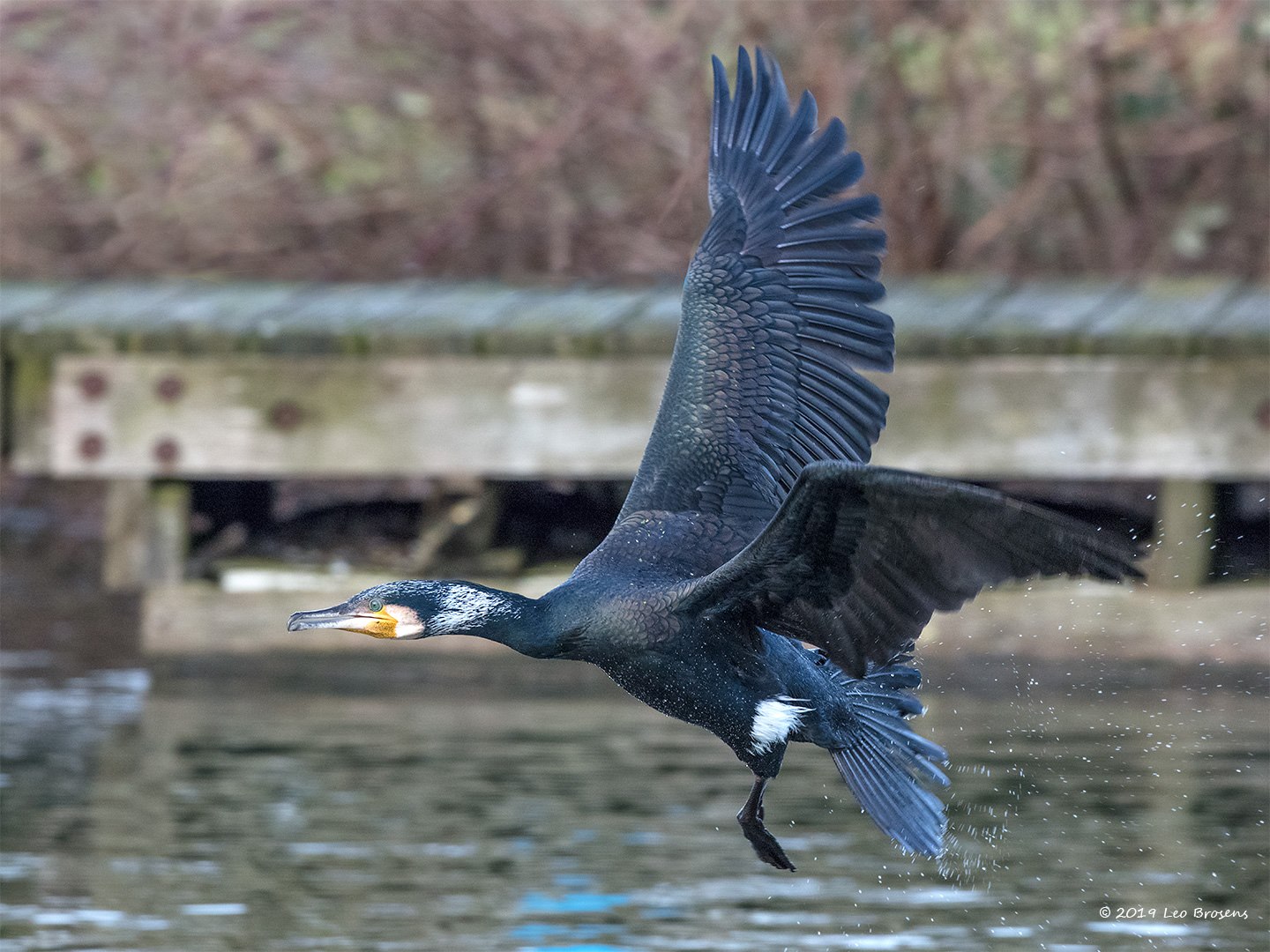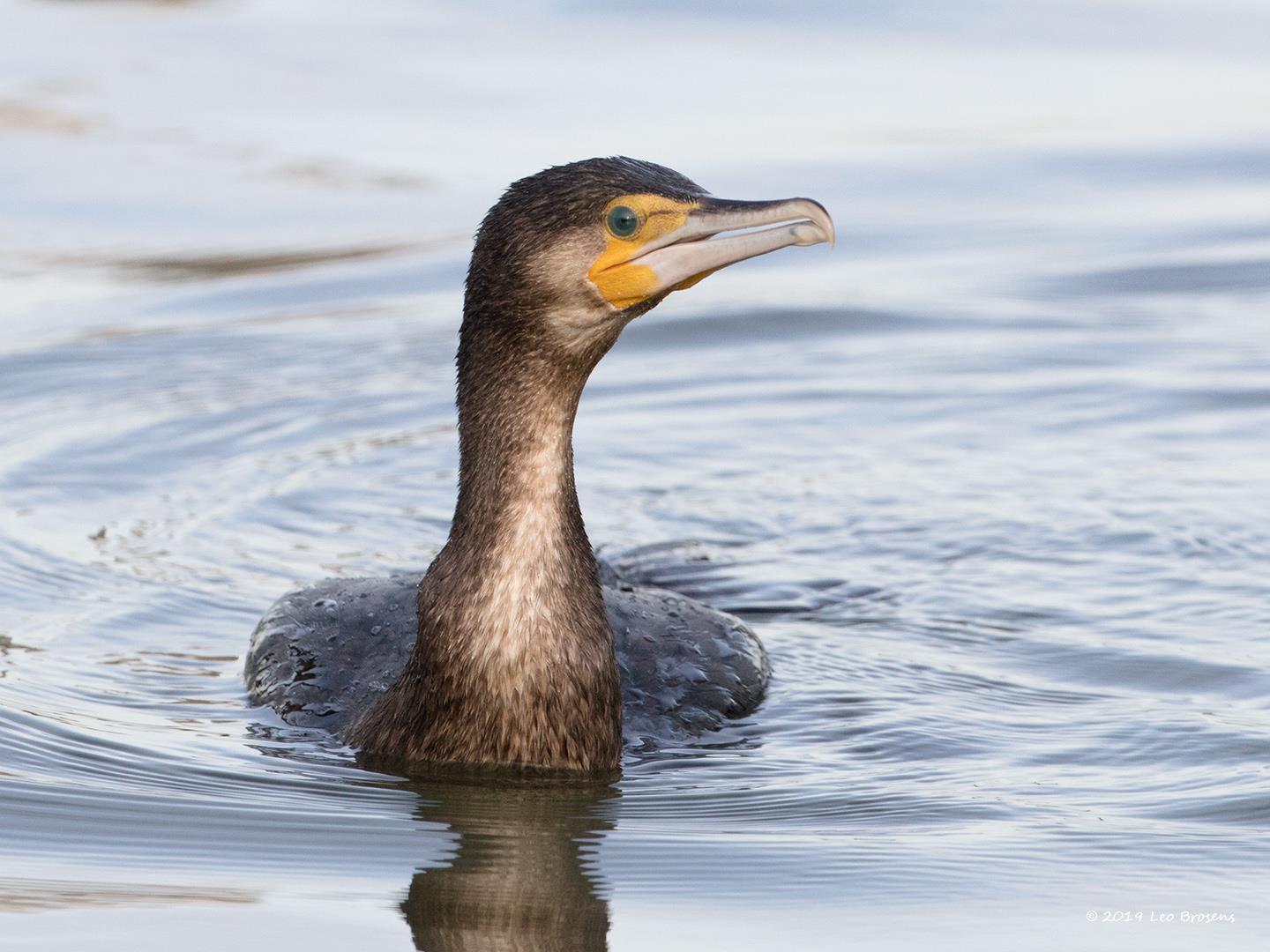 Dat groene oog valt me iedere keer weer op bij deze echte watervogel. Een beetje een rare watervogel is ie wel want hij wordt echt nat omdat ie zichzelf slecht inoliet. Het water wordt zo niet afgestoten door het verenkleed en kan de huid bereiken. Niet zo handig met dit koude weer lijkt me.