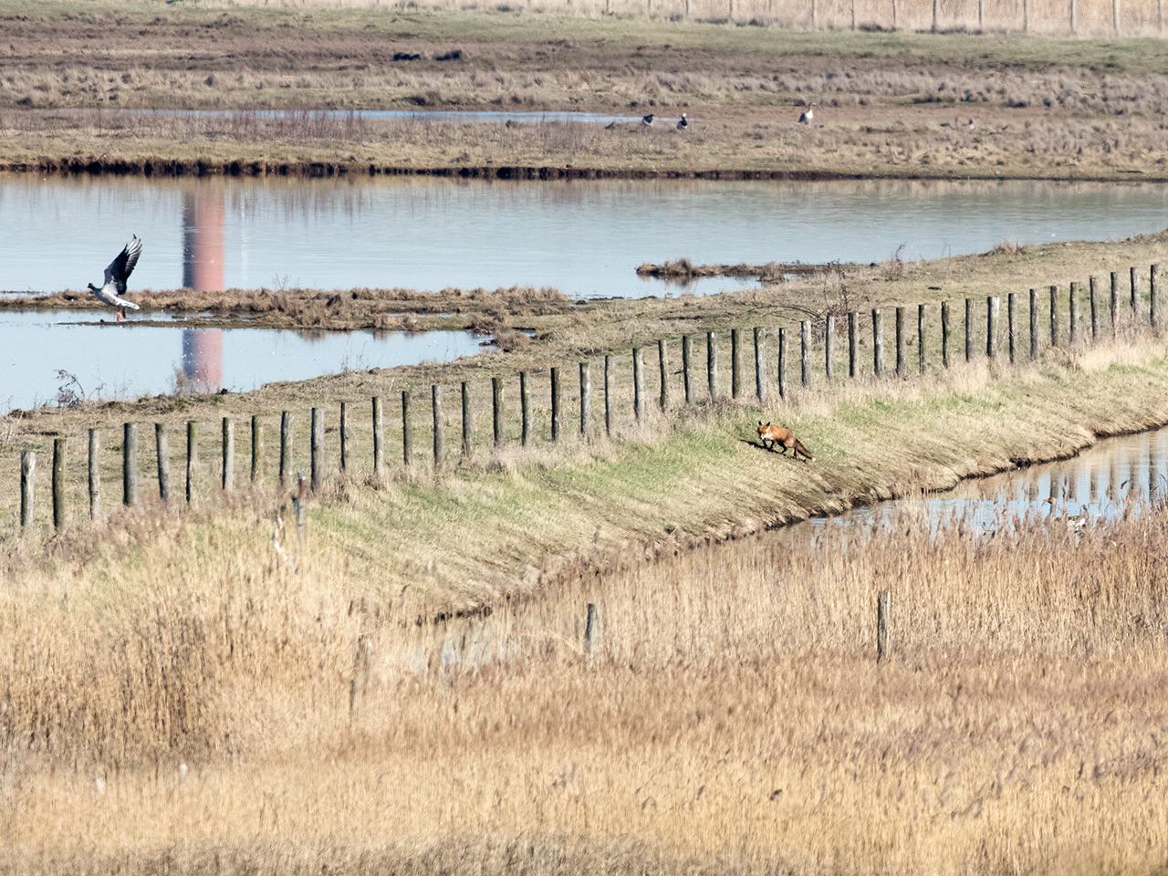 Ik zie ze niet zo vaak maar hier bij de Zeedijk te Scherpenisse liet gewoon overdag deze vos zich zien in het vogelrijke natuurgebiedje daar, zij het op grote afstand. De reigers en eenden lieten hem best dichtbij komen eer ze opvlogen. De vos kwam wat dichterbij maar verdween voor mij spoorloos in een berm in het afgezette gebied. Toch mooi om dit prachtige dier eens te zien.