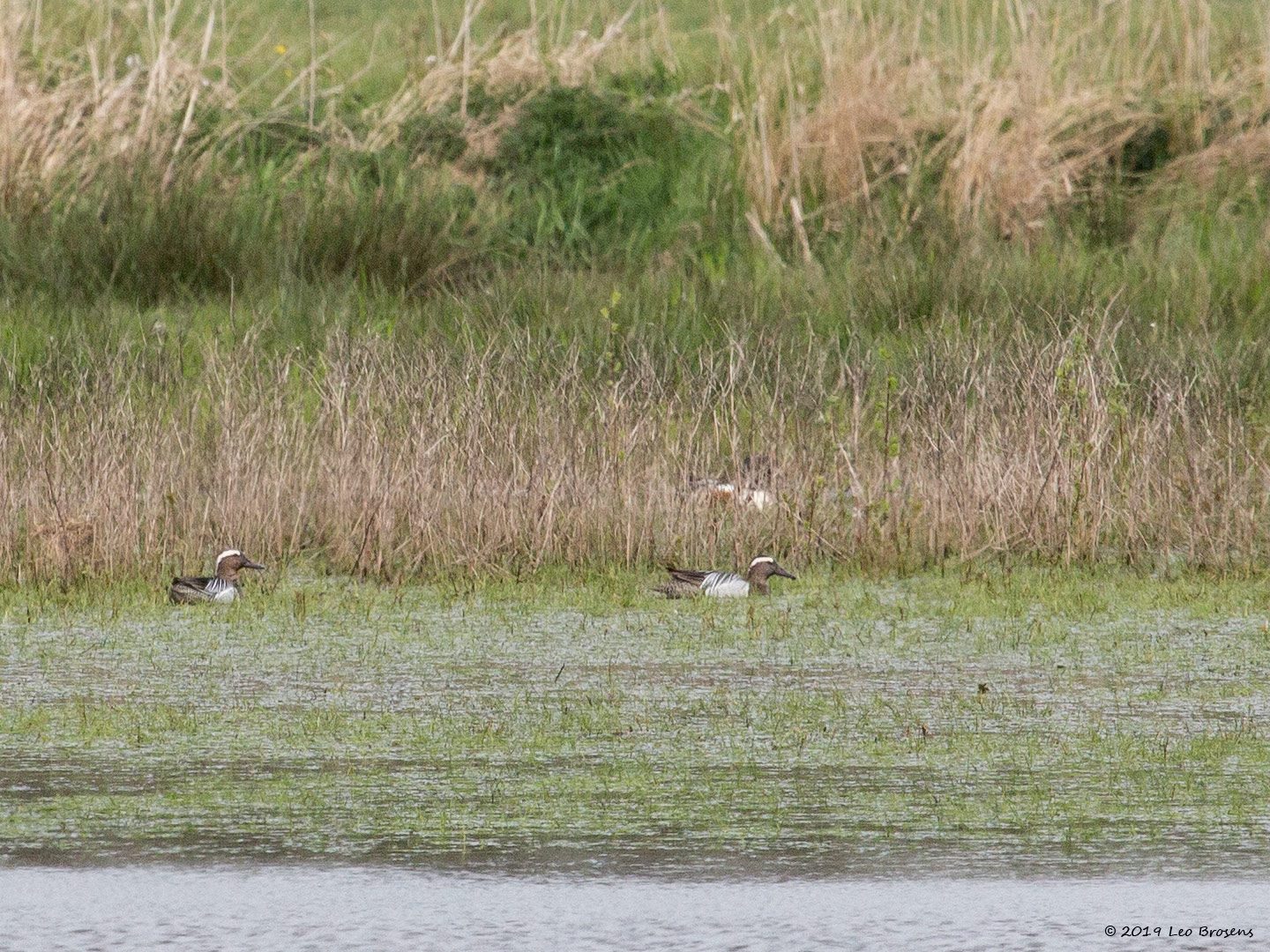 In De Matjens zie je altijd wel een groepje wintertalingen. In de trektijd tref je daar ook wel eens een zomertaling bij aan. Zo ook gisteren toen ik er twee zag foerageren. De andere foto is eerder in Zeeland gemaakt. En weer hetzelfde liedje. Zo schaars als hij tegenwoordig is, zo algemeen was hij tot rond 1960. Daarna begon echter een steile achteruitgang die tot decimering van de broedpopulatie leidde en waarbij grote delen van het land hun Zomertalingen kwijtraakten. In agrarisch cultuurland viel de afname samen met intensiever grondgebruik: waterstandverlaging, frequent maaien, hogere beweidingsdruk enzovoort. Veel natuurgebieden werden ongeschikt door verdroging. Daar bovenop zorgden droogteperiodes in het overwinteringsgebied, de Sahel, voor massale sterfte. Inmiddels staat de soort op de Rode Lijst van bedreigde vogelsoorten.