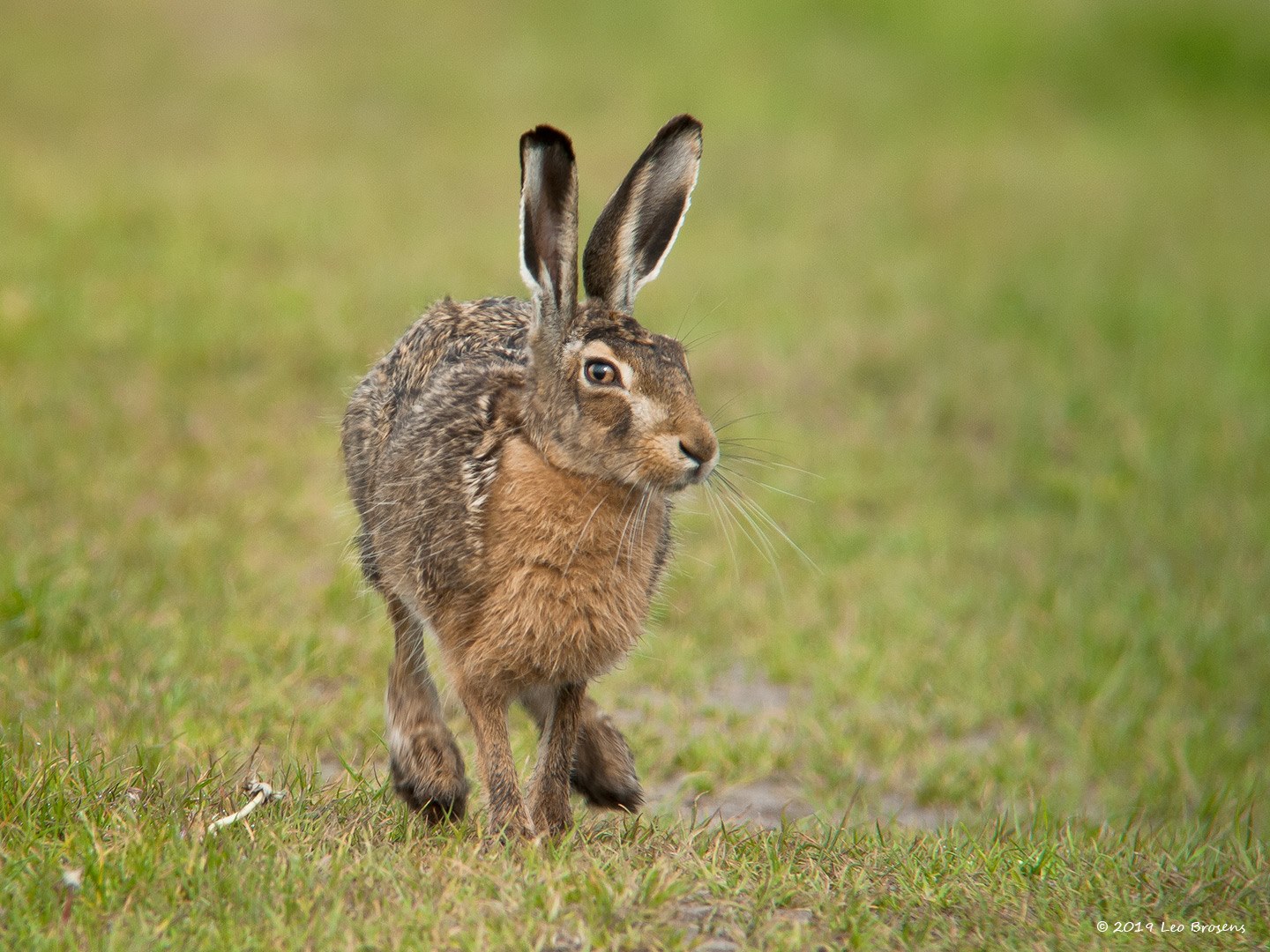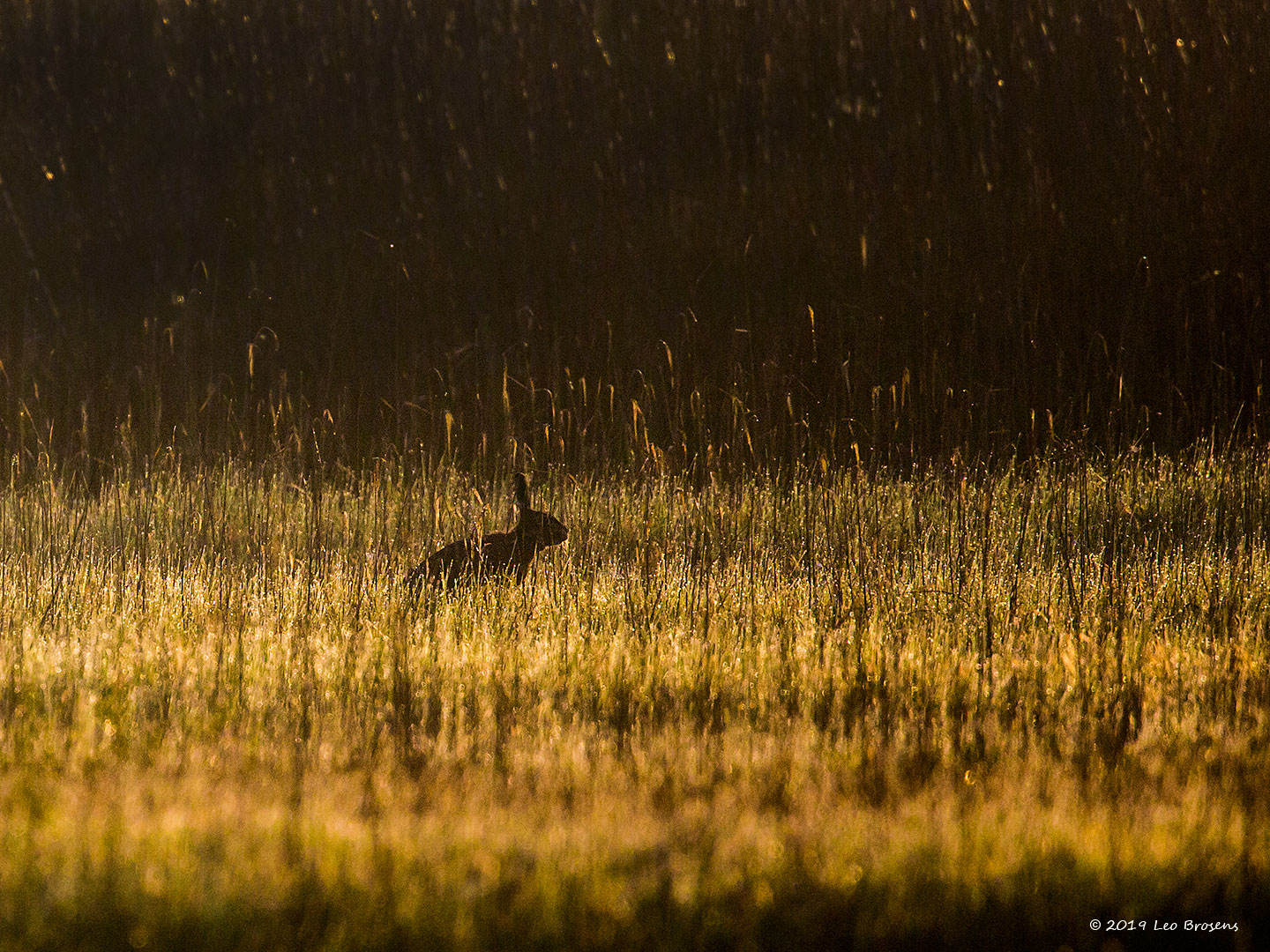 Eentje uit mijn archief. Een foto waar het niet draait om details maar om sfeer. Een foto die me doet denken aan een spreekwoord; "De morgenstond heeft goud in de mond" ofwel "Vroeg in de morgen doe je vaak het makkelijkste het meeste werk". Dat geldt ook voor deze haas, heel vroeg is het het veiligst om de tank te vullen om de dag weer door te kunnen komen. En vroeg was het hier op een ochtend vroeg in mei, 5uur59 om precies te zijn. De zonnestralen piepen net boven de horizon uit en verlichten het gras tot gouden sprieten. De dauw versterkt het effect nog. Of, is het geen gewoon gras maar buntgras, een product van het teveel aan stikstof in onze natuur. Is het geen goud dat er blinkt, is het een probleem?