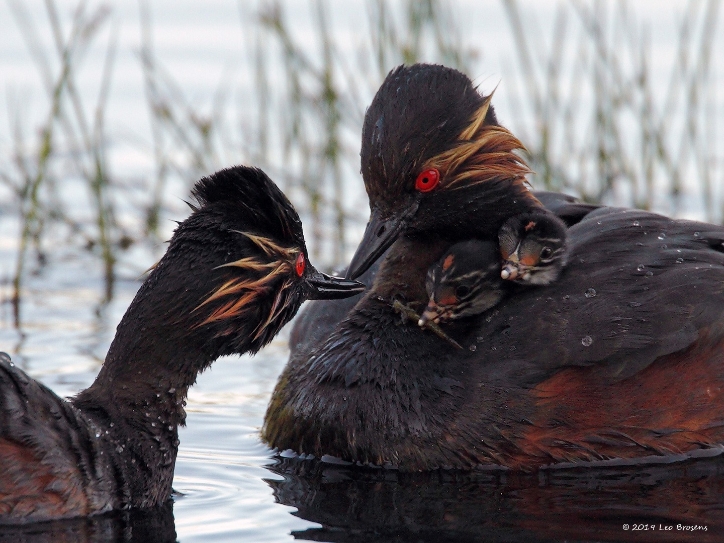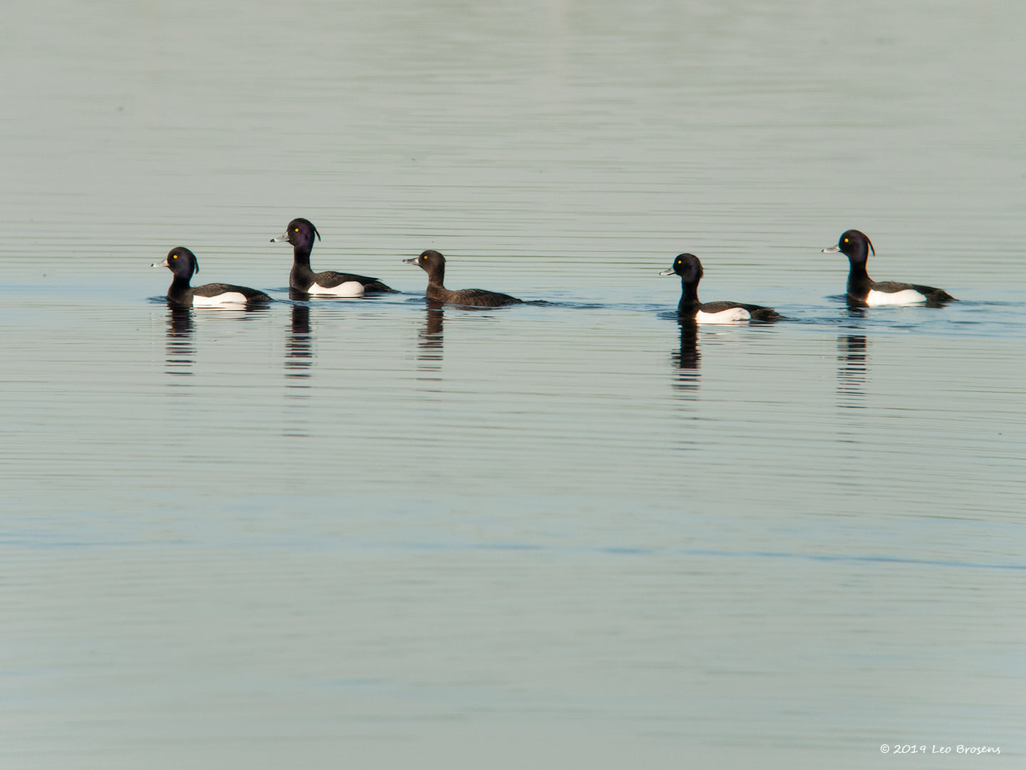 De kuifeend is talrijk. Komt mede omdat ze niet te moeilijk doen bij het vinden van een broedplek. Dat broeden lukt ze dus vrij aardig. Hier zien we een resultaat daarvan. Altijd leuk zo'n groepje kleuters. Er zijn nog geen kleuren te onderscheiden, ook nog geen geel in het oog te zien.
