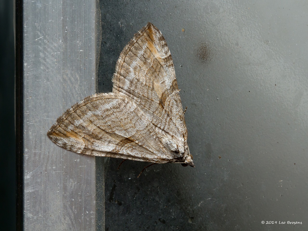 Ik zag deze spanner in het voorjaar vaak bij onze buitenlamp. Voor een spanner houdt ie de vleugels in rust best ver over elkaar. Veel nachtvlinders zien er niet echt spectaculair uit, deze soort ook niet. Ik trof ze aan meestal op de muur bij de lamp maar ook wel op een plant en op een raam in de nabijheid van de lamp. Steeds in het donker, de foto's zijn dan ook steeds met flits gemaakt.
