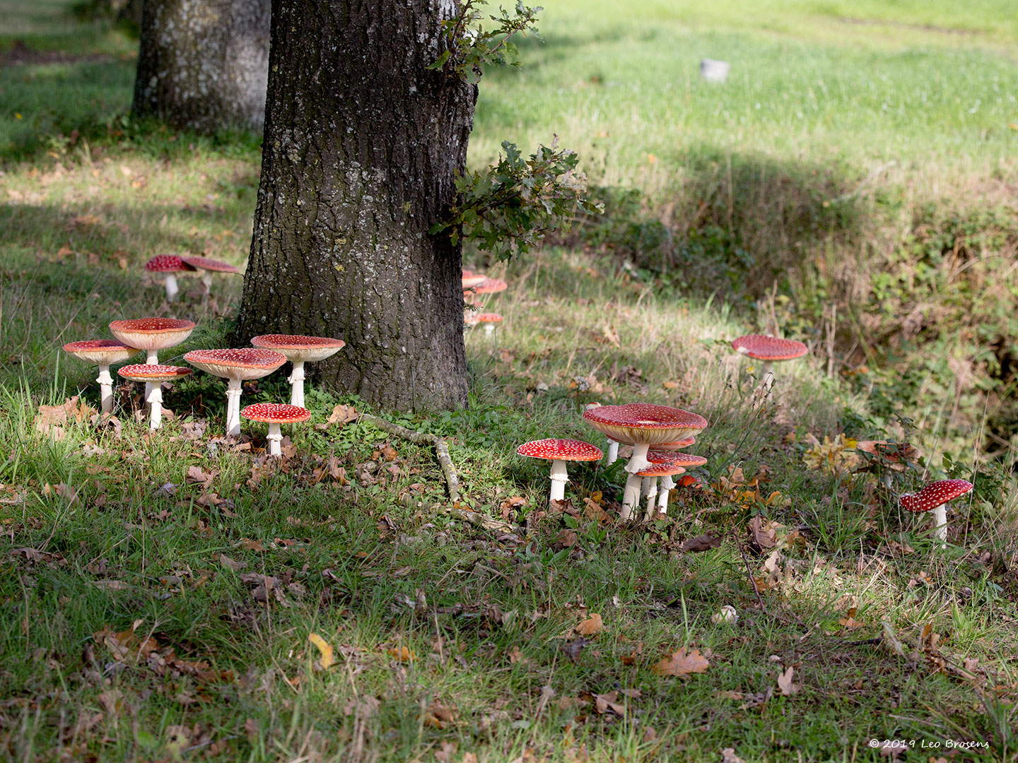 Je weet wel, rood met witte stippen. Hier onmiskenbaar te zien. Zag echter geen kabouters, daarvoor moet ik natuurlijk straks in het donker terug gaan. Evenmin zag ik vliegen. Wel zie ik nu op enkele plaatsen heel veel vliegenzwammen. De omstandigheden daar zijn daarvoor dit jaar kennelijk erg gunstig.