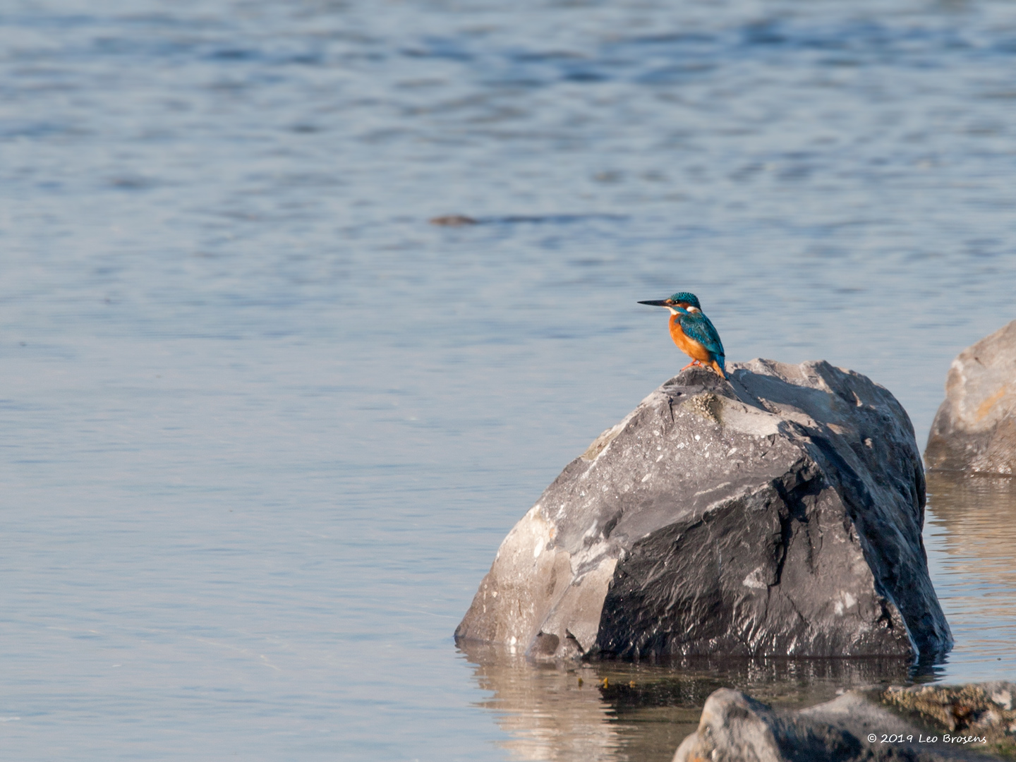 Je verwacht dit pareltje langs een sloot, een beek, een rivier, of bij een ven. Maar niet zoals hier op een basaltsteen langs de Oosterschelde want daar nam ik deze foto op tweeentwintig oktober. Ik zag dit mannetje (vrouwtjes hebben immers een ondersnavel met rood daarin) hier niet vissen, het zal een toevallig rustplekje zijn geweest.