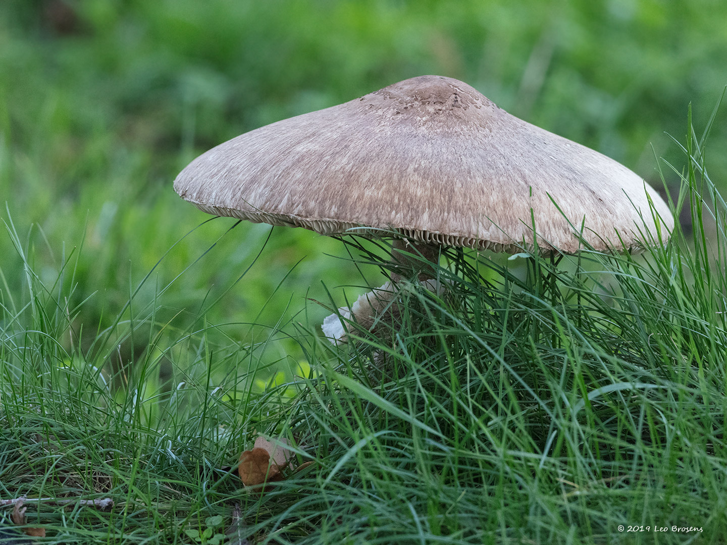 Toen ik naar schoonmoeder reed vielen me een aantal bruine vlekken op langs de weg met eikenbomen. Net voorbij de sloot in een wei bleken echt grote paddenstoelen te staan. Ik heb geen verstand van paddenstoelen maar ik denk dat het grote parasolzwammen waren. Leuk om te zien hoe de verschillende verschijningsstadia zo dicht bij elkaar staan. Van beginnend knuppeltje tot grote paraplu. De steel van de grote parasolzwam is duidelijk bruin getijgerd. De jonge grote parasolzwammen zien er uit als trommelstokken en worden zo ook wel genoemd. Een mycofaag, ofwel een paddenstoeleneter, lust er wel pap van. Ik heb ze lekker laten staan, bak wel een eitje.