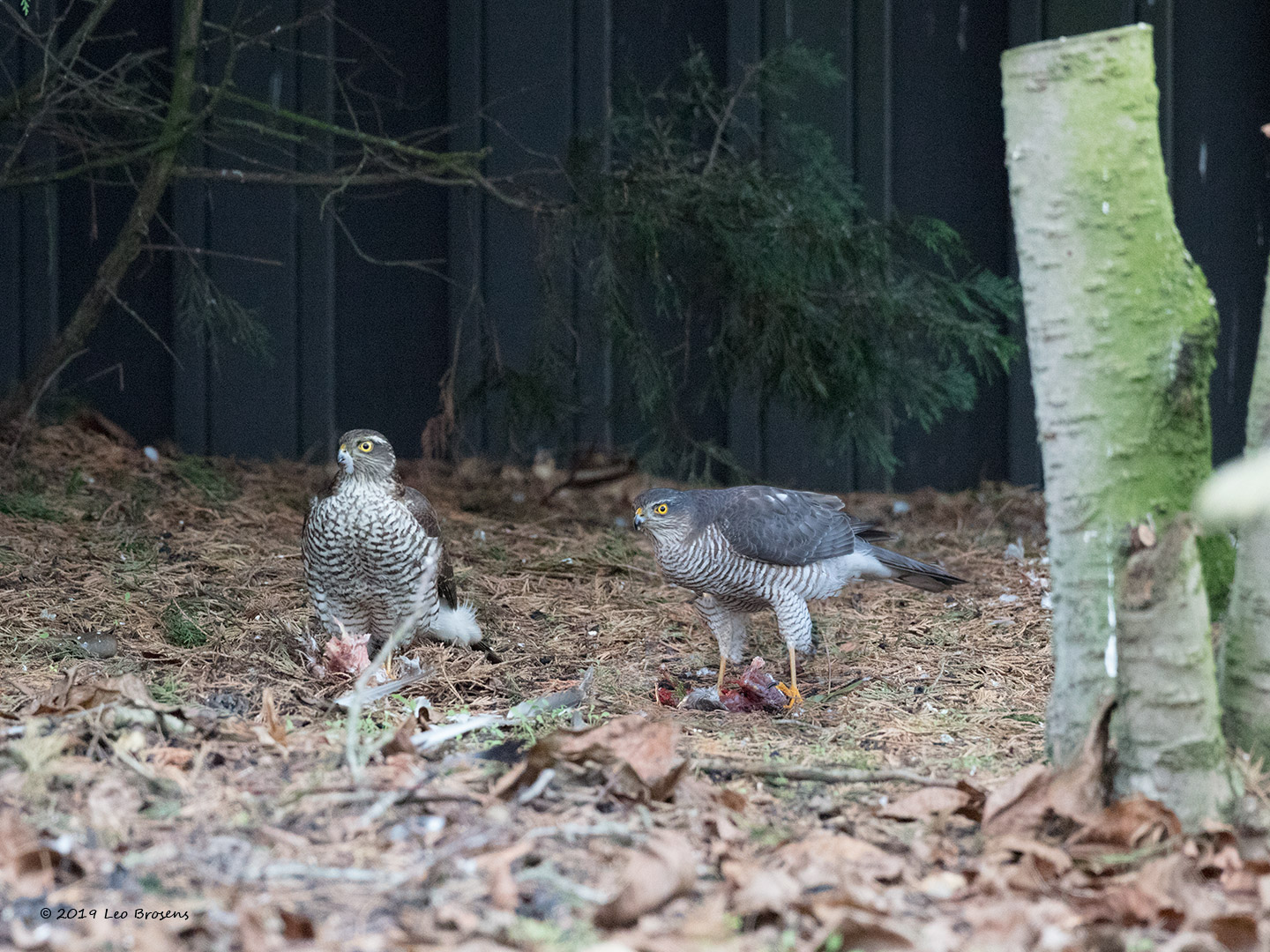 Zaterdag zat er een bruinige sperwer in de tuin te eten, precies een jaar geleden ook eentje maar die was blauwer en had mooiere strepen. Beide vrouwtjes. Van Frans leerde ik dat die bruinige een eerste jaars vogel is. Die andere moet minimaal twee jaar oud geweest zijn. Met Photoshop heb ik beide predators naast elkaar gezet. Kun je mooi de leeftijdsverschillen zien.