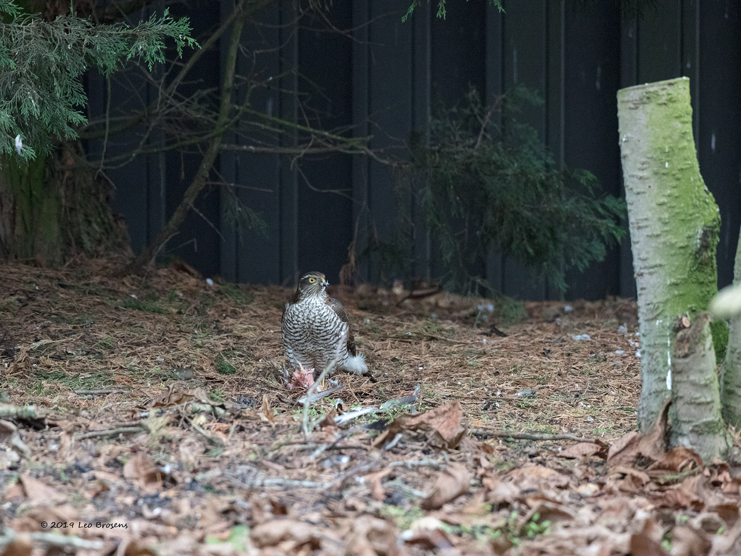 Vandaag werd de plukplaats achter in onze tuin weer een keer gebruikt. Dramatisch voor de turkse tortel die werd opgegeten. Keihard is die natuur. Maar wel mooi en boeiend. Deze keer is het vrouwtje sperwer veel bruiner dan de vorige keer. Is dat winterkleed of is het een eerste jaars?