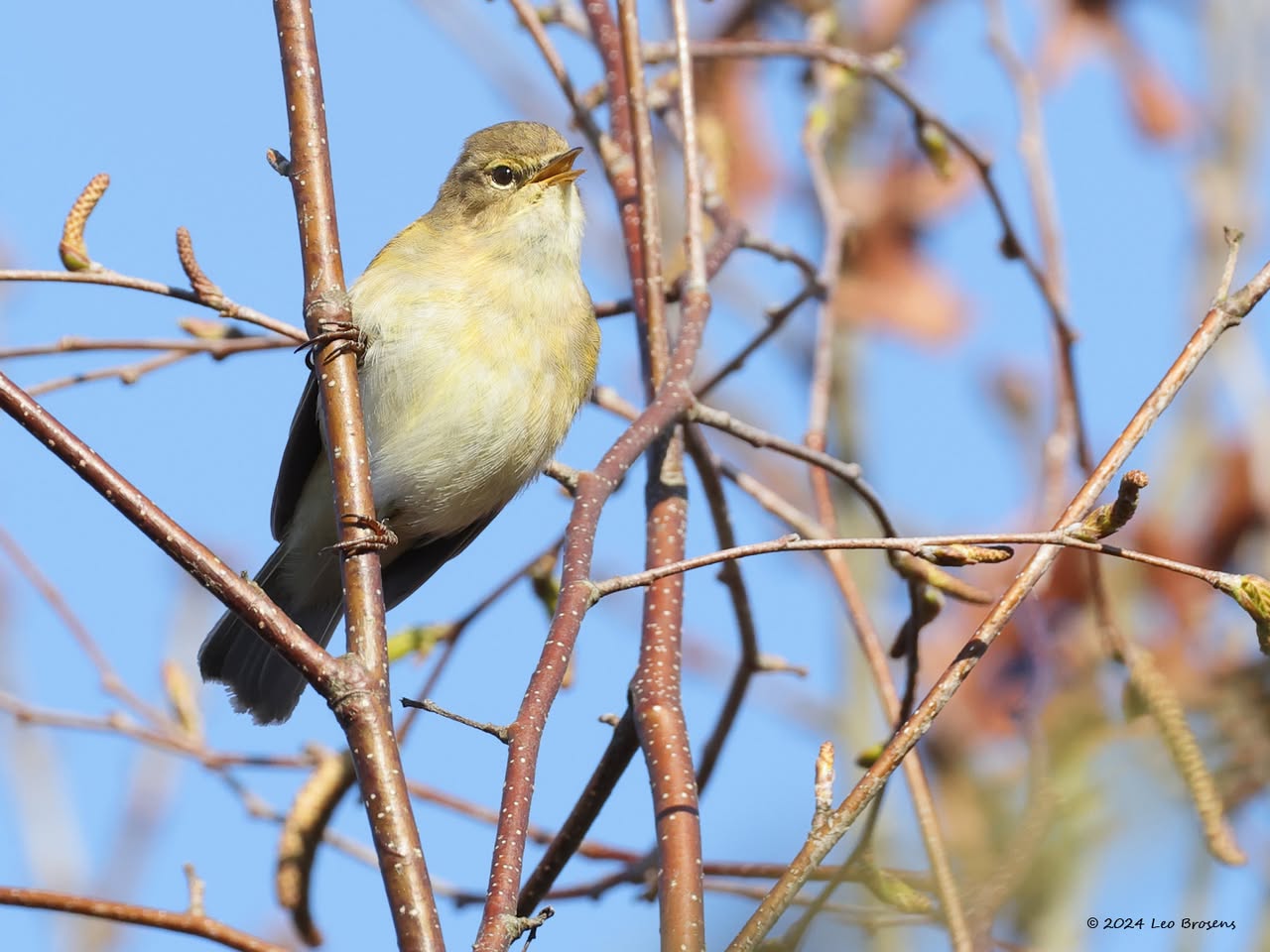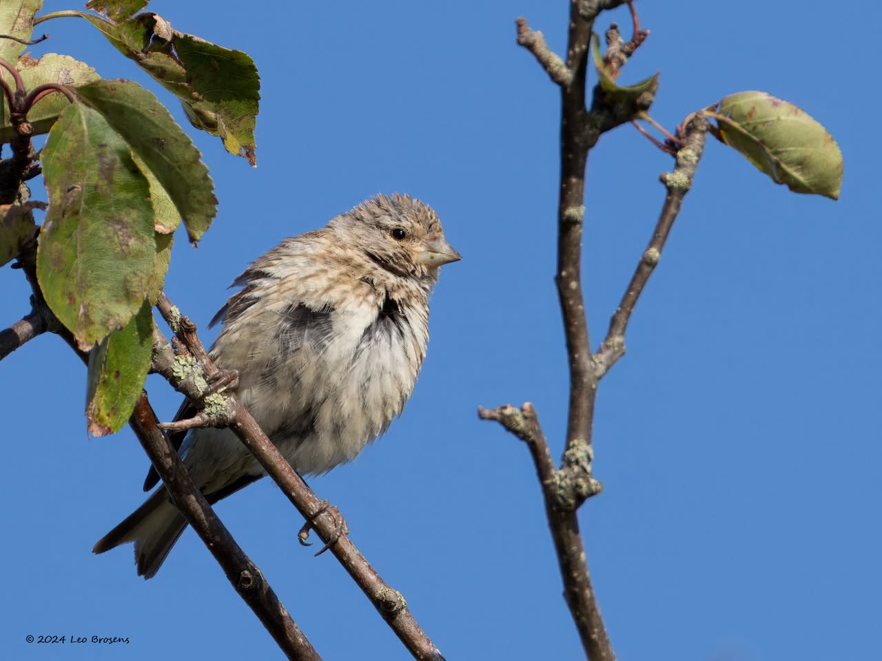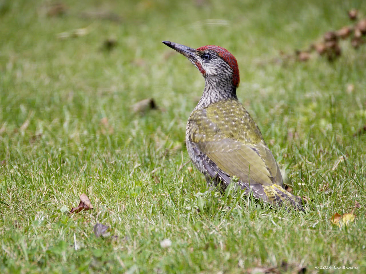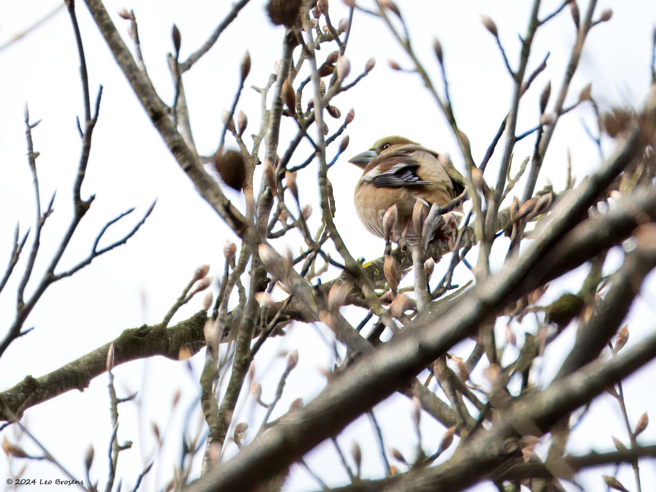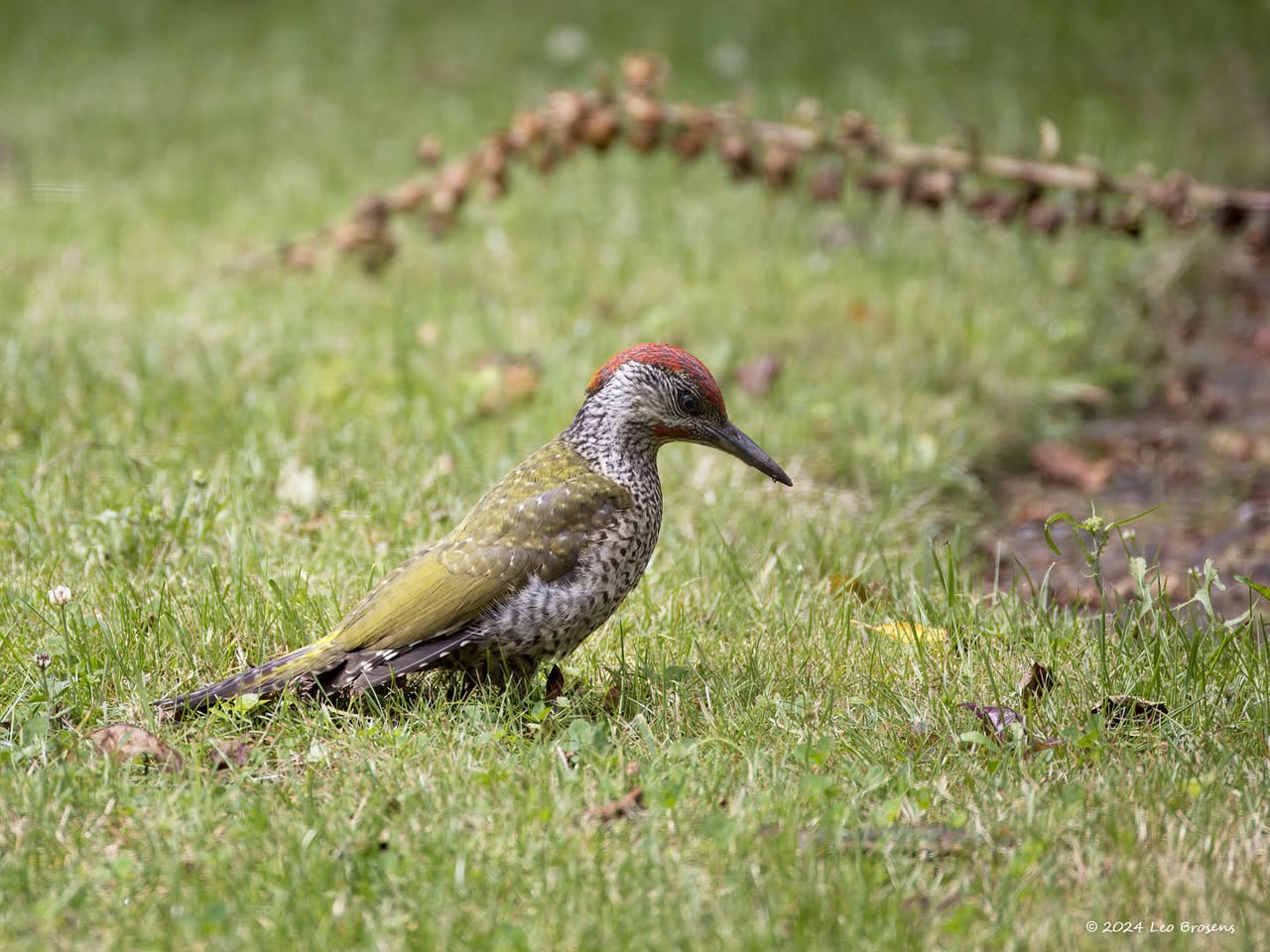 Gisteren liet ik het mannetje zien. Maar in het groepje dat ik tegen kwam zaten natuurlijk ook vrouwtjes, zoals dit. Het groepje nam er even rustig de tijd voor om wat berkenzaadjes te eten. Zaadjes genoeg, er wordt mee gemorst. Of zijn het slechts de schilletjes van de zaadjes die weer uit de snavel vallen na uitpeuteren van het feitelijke zaadje?