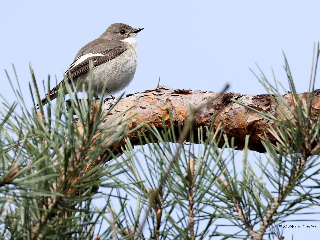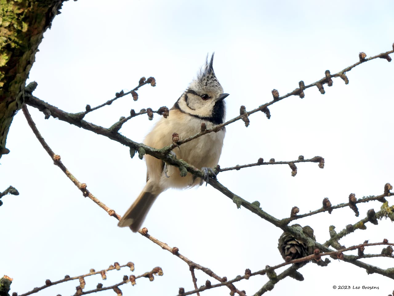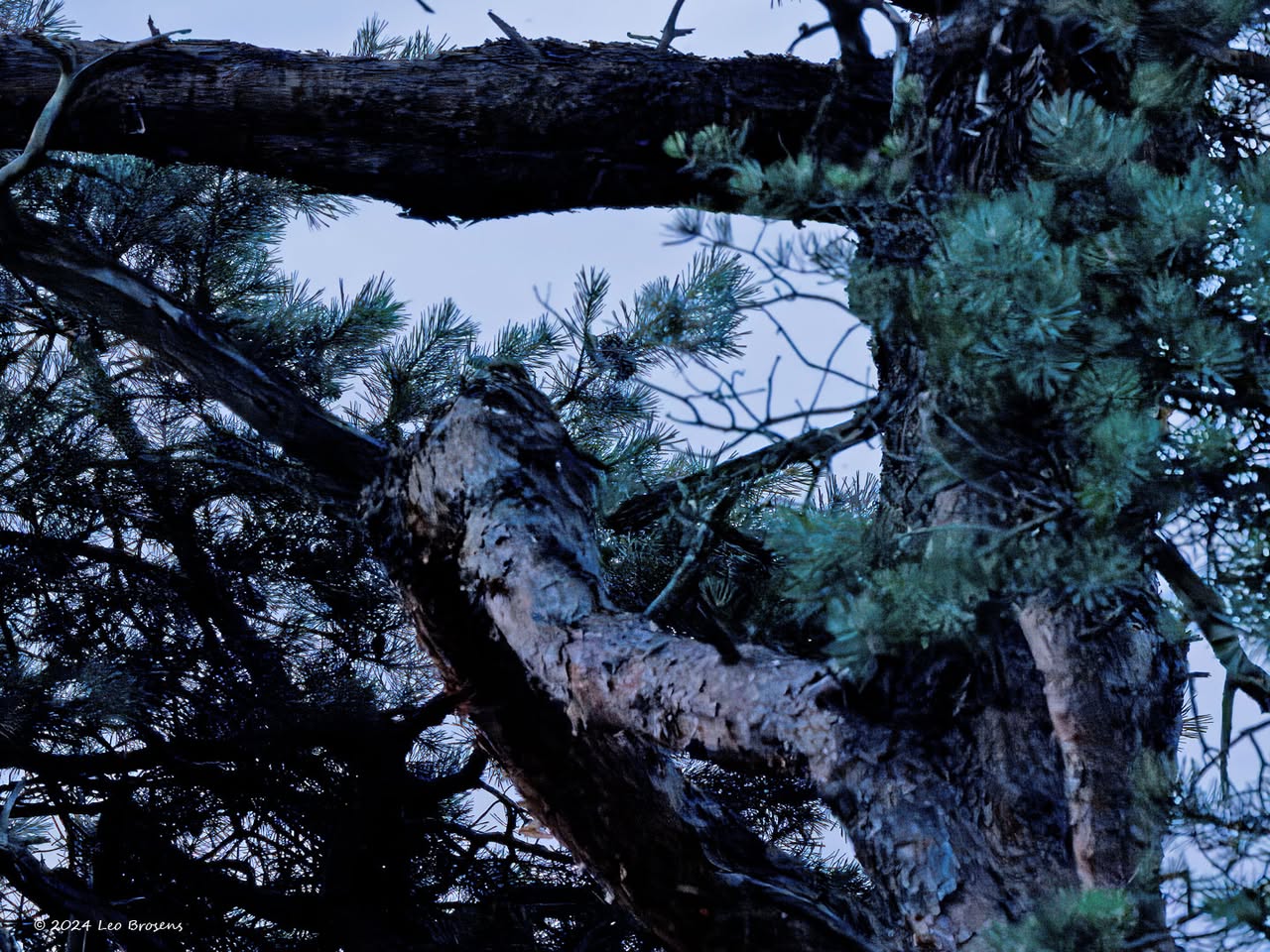 Niet alleen sijsjes zoeken in wintertijd naaldbomen af op iets eetbaars, ook pimpeltjes doen dat. Zo kon ik dit pimpeltje tijdens dat werk vastleggen. Bij goed kijken zag ik dat hij of zij iets aan de haak geslagen had, iets met de snavel te pakken had. Is dat nu een zaadje of een larfje, ze lusten beide nu. Ik denk een larfje, een heel klein rupsje?