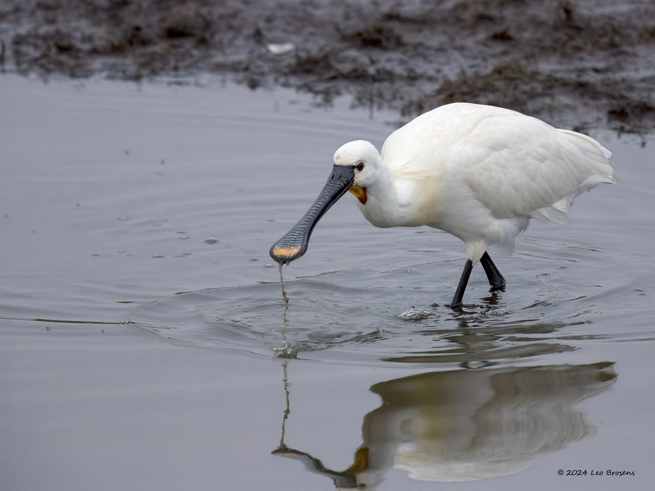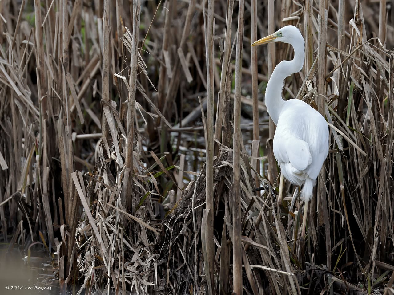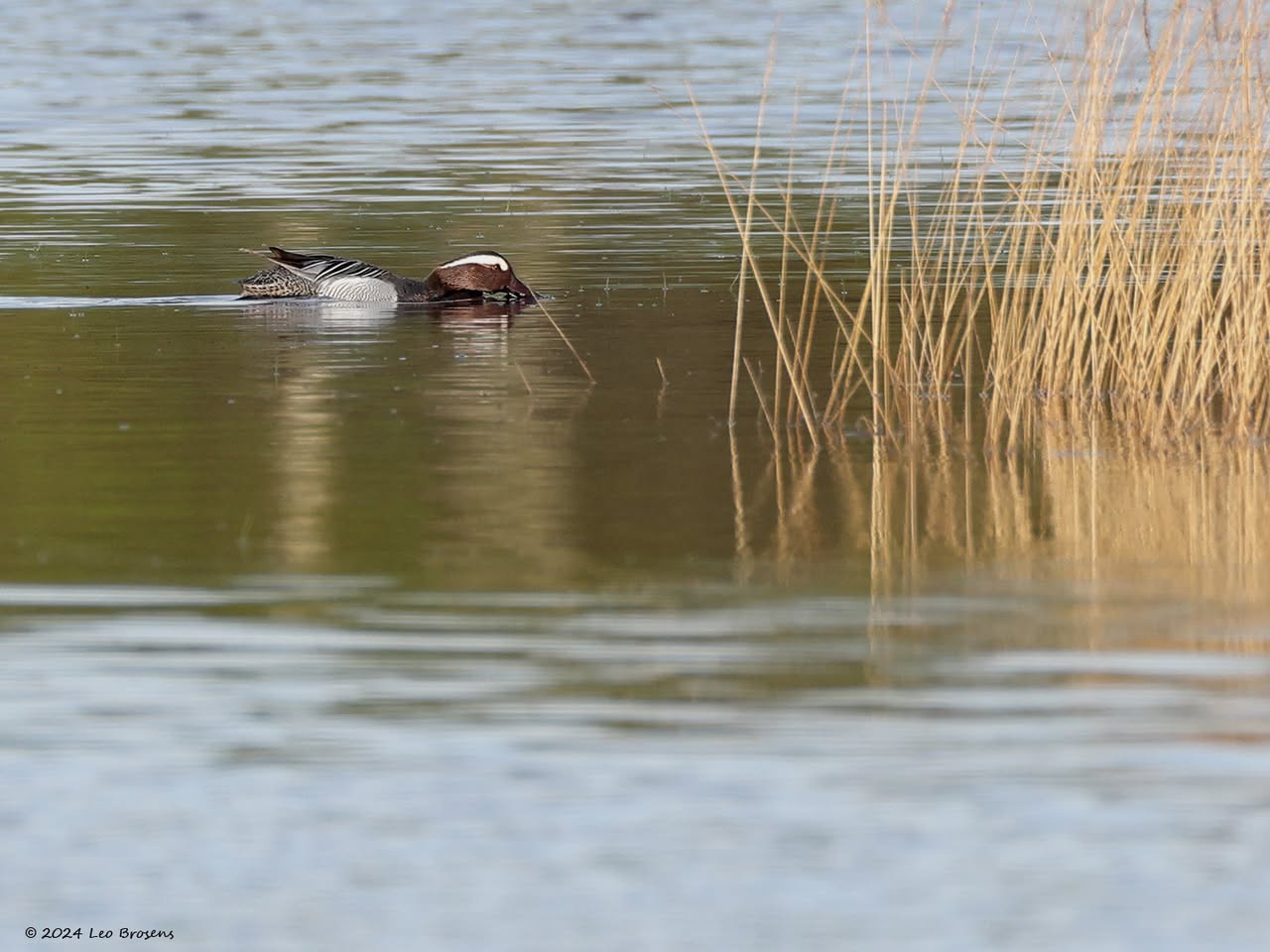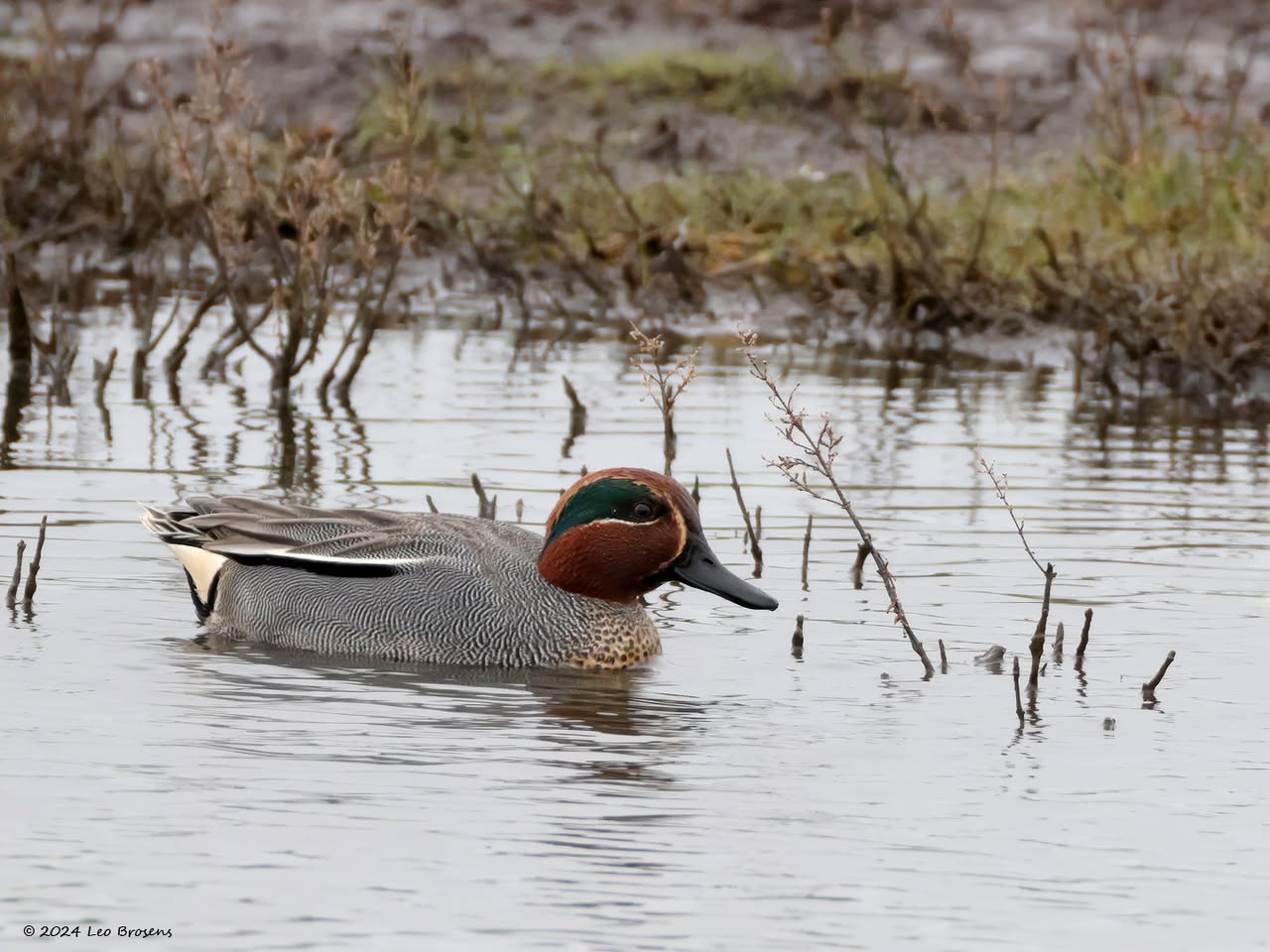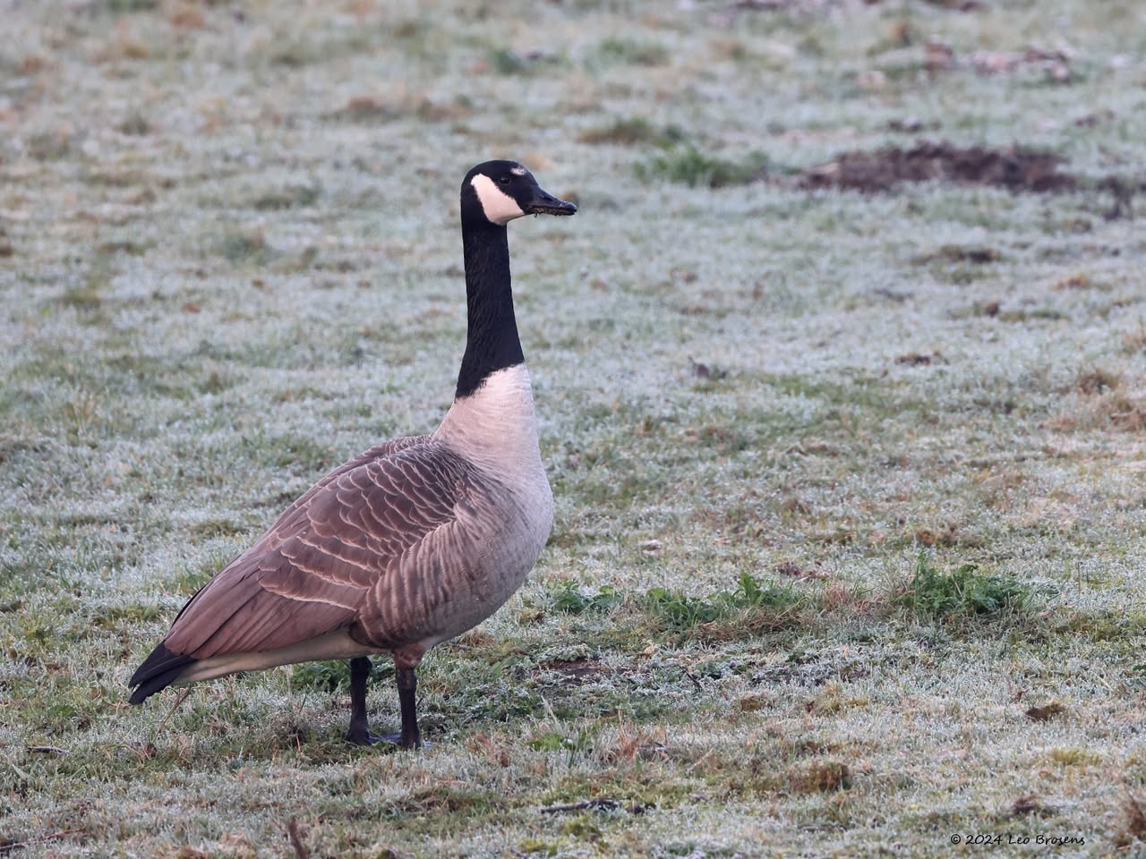 Een wonder! Een stormmeeuw die op water kan staan. Maar nee, zo'n vaart loopt het hier niet. In de leemskuilen was gisteren het laagje ijs al ver weggesmolten, vandaar een laagje water op het ijs. De stormmeeuw kun je nu hier af en toe aantreffen in weilanden. Hij is zichtbaar kleiner dan de zilvermeeuw, heeft geelgroene poten en heeft in winterkleed een donkere dwarsstreep op de snavelpunt. Die snavel is ook veel kleiner dan bij de zilvermeeuw.