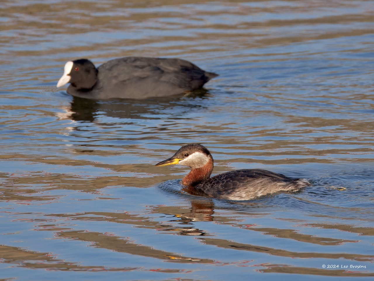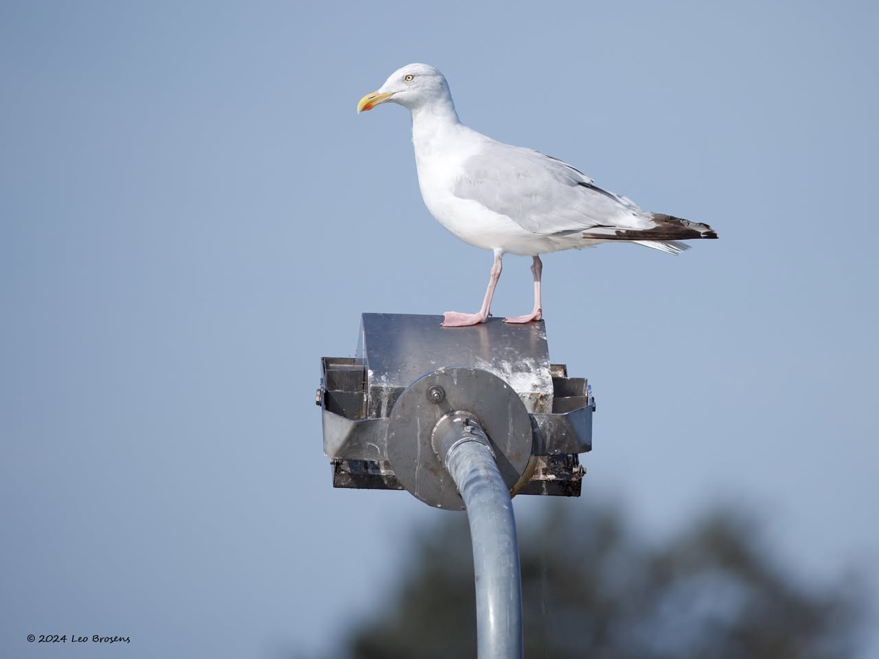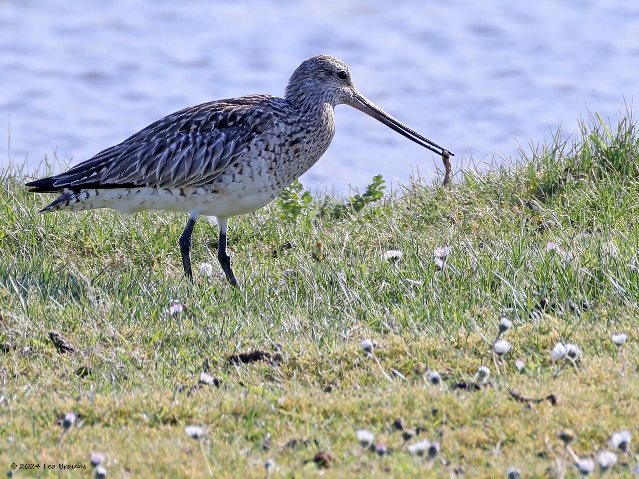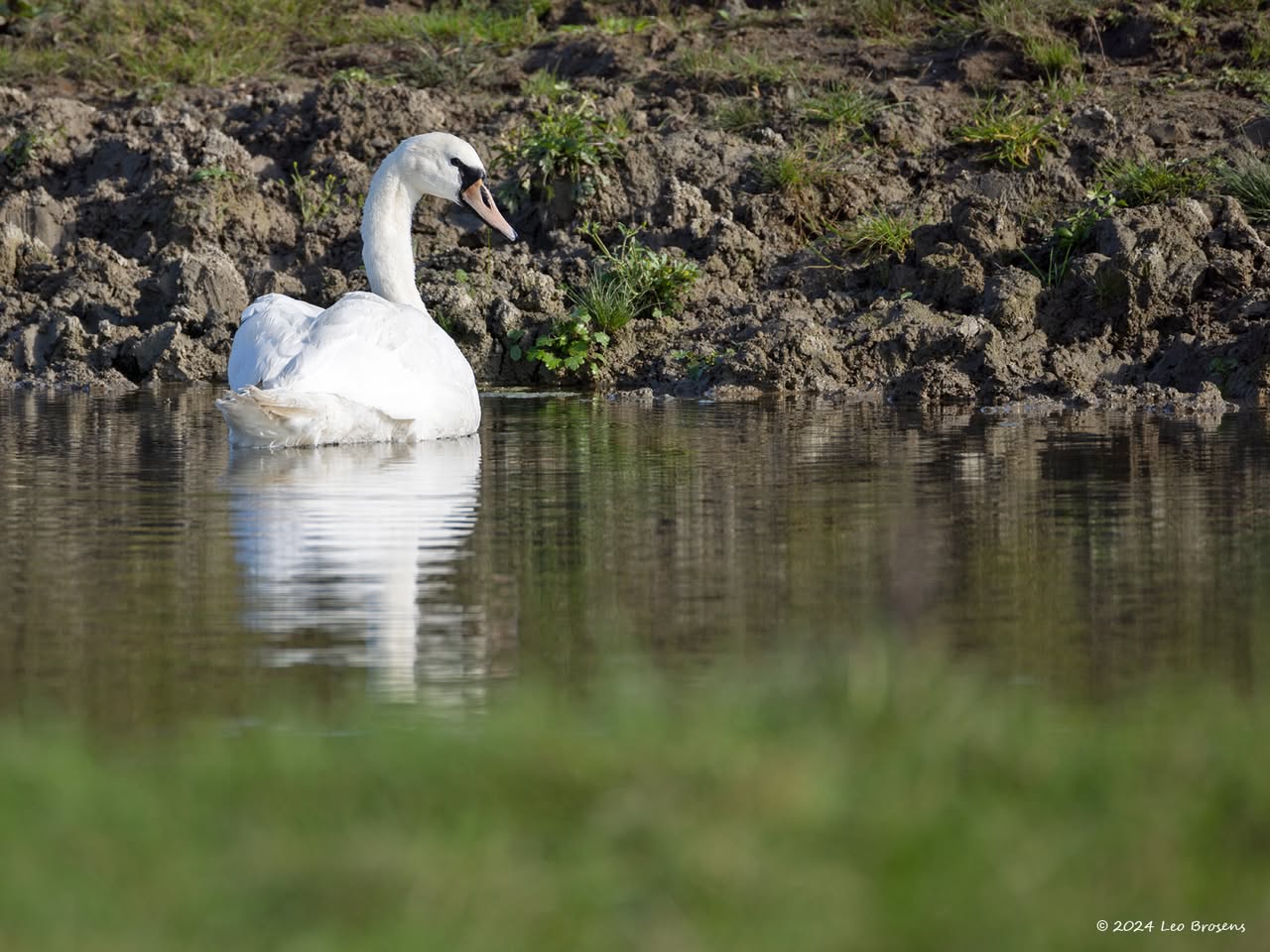Een wonder! Een stormmeeuw die op water kan staan. Maar nee, zo'n vaart loopt het hier niet. In de leemskuilen was gisteren het laagje ijs al ver weggesmolten, vandaar een laagje water op het ijs. De stormmeeuw kun je nu hier af en toe aantreffen in weilanden. Hij is zichtbaar kleiner dan de zilvermeeuw, heeft geelgroene poten en heeft in winterkleed een donkere dwarsstreep op de snavelpunt. Die snavel is ook veel kleiner dan bij de zilvermeeuw.