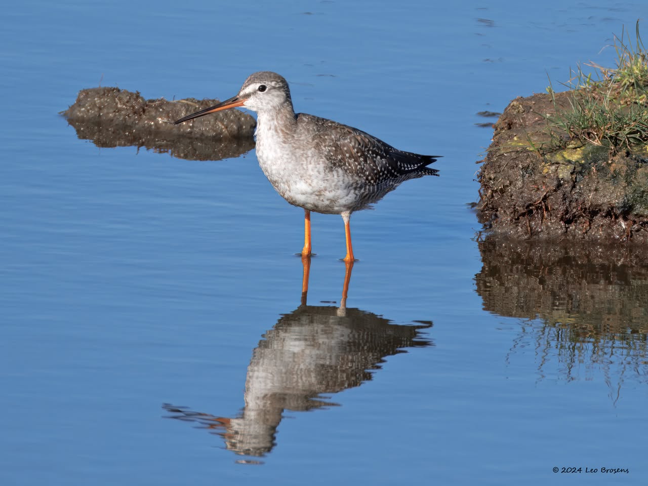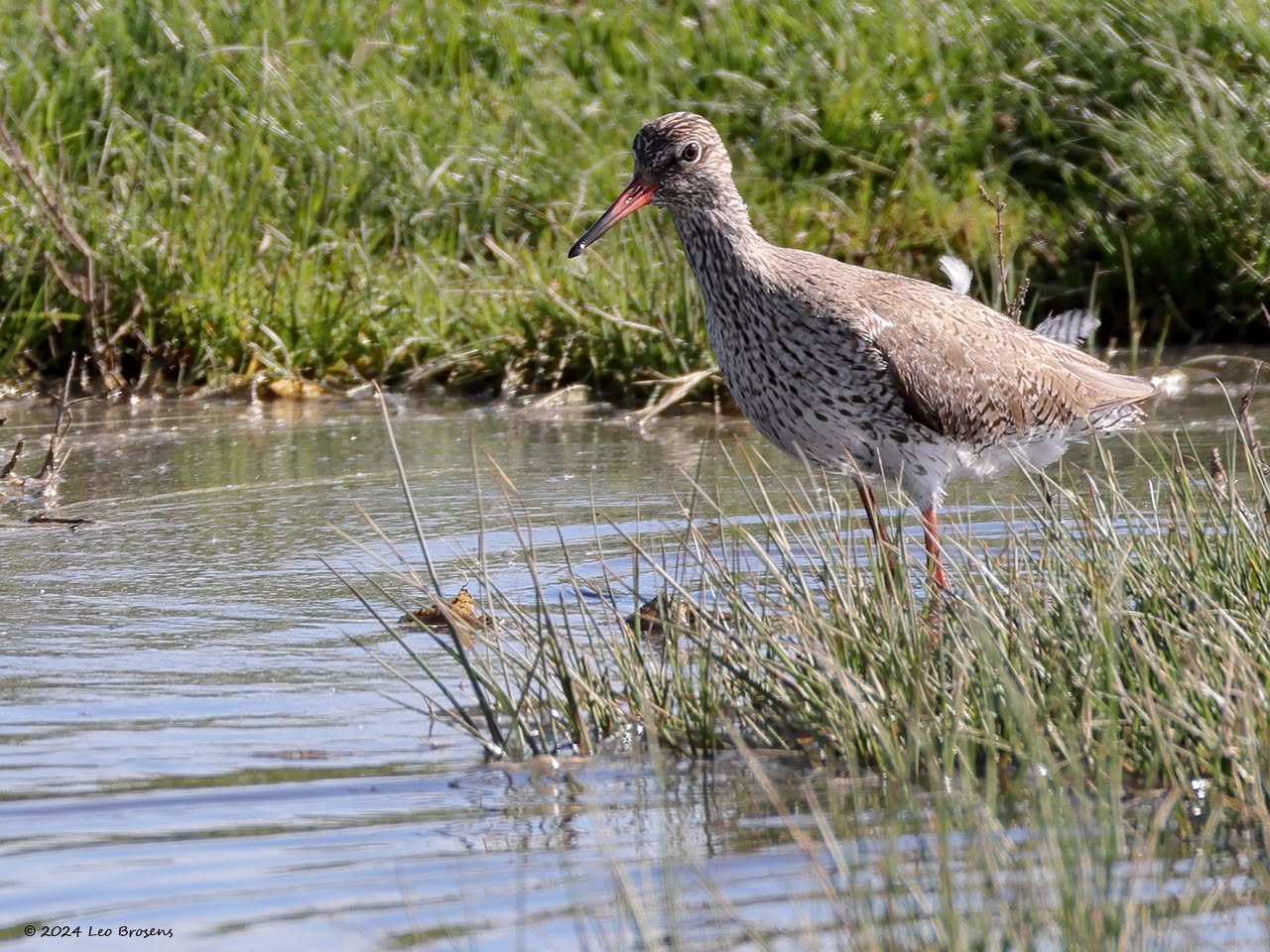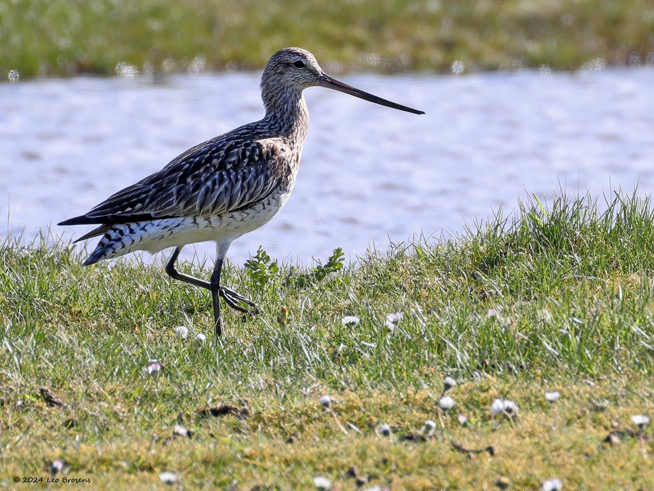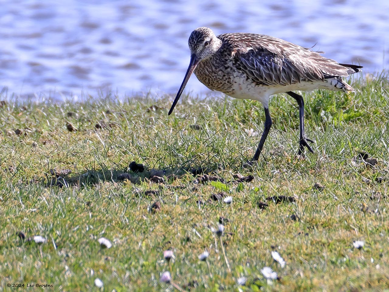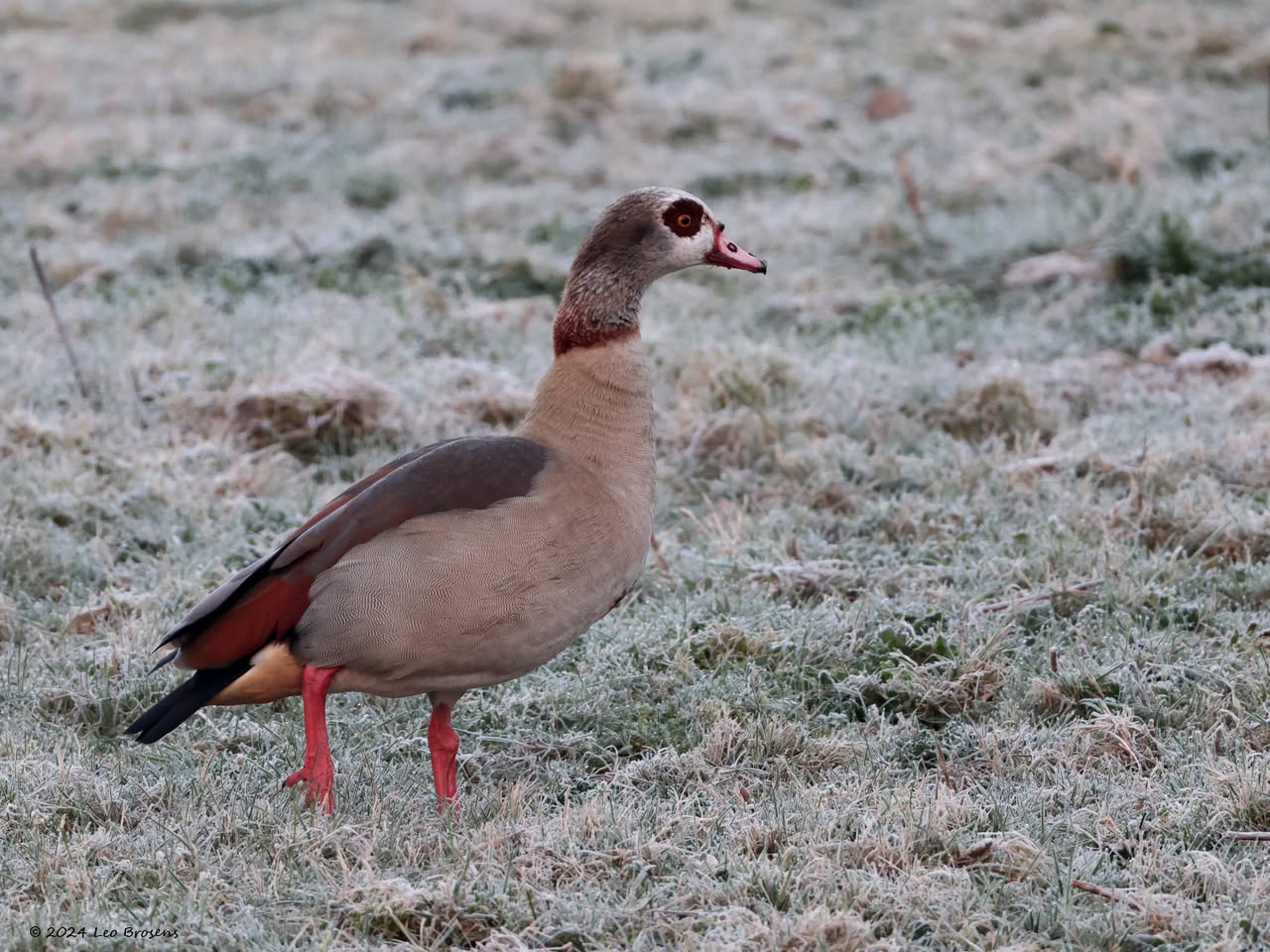 Een wonder! Een stormmeeuw die op water kan staan. Maar nee, zo'n vaart loopt het hier niet. In de leemskuilen was gisteren het laagje ijs al ver weggesmolten, vandaar een laagje water op het ijs. De stormmeeuw kun je nu hier af en toe aantreffen in weilanden. Hij is zichtbaar kleiner dan de zilvermeeuw, heeft geelgroene poten en heeft in winterkleed een donkere dwarsstreep op de snavelpunt. Die snavel is ook veel kleiner dan bij de zilvermeeuw.