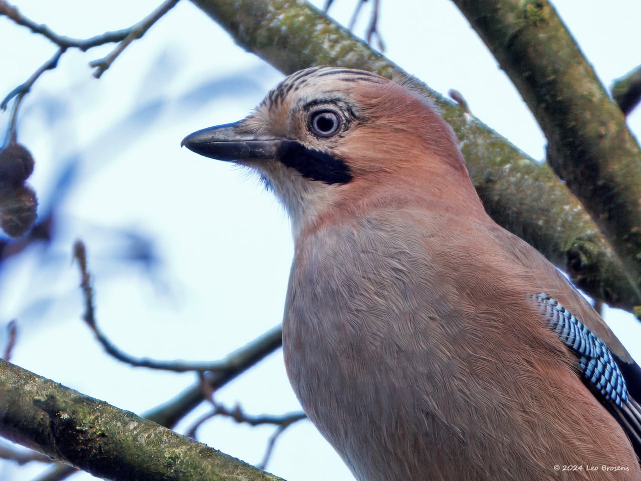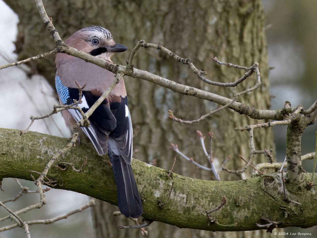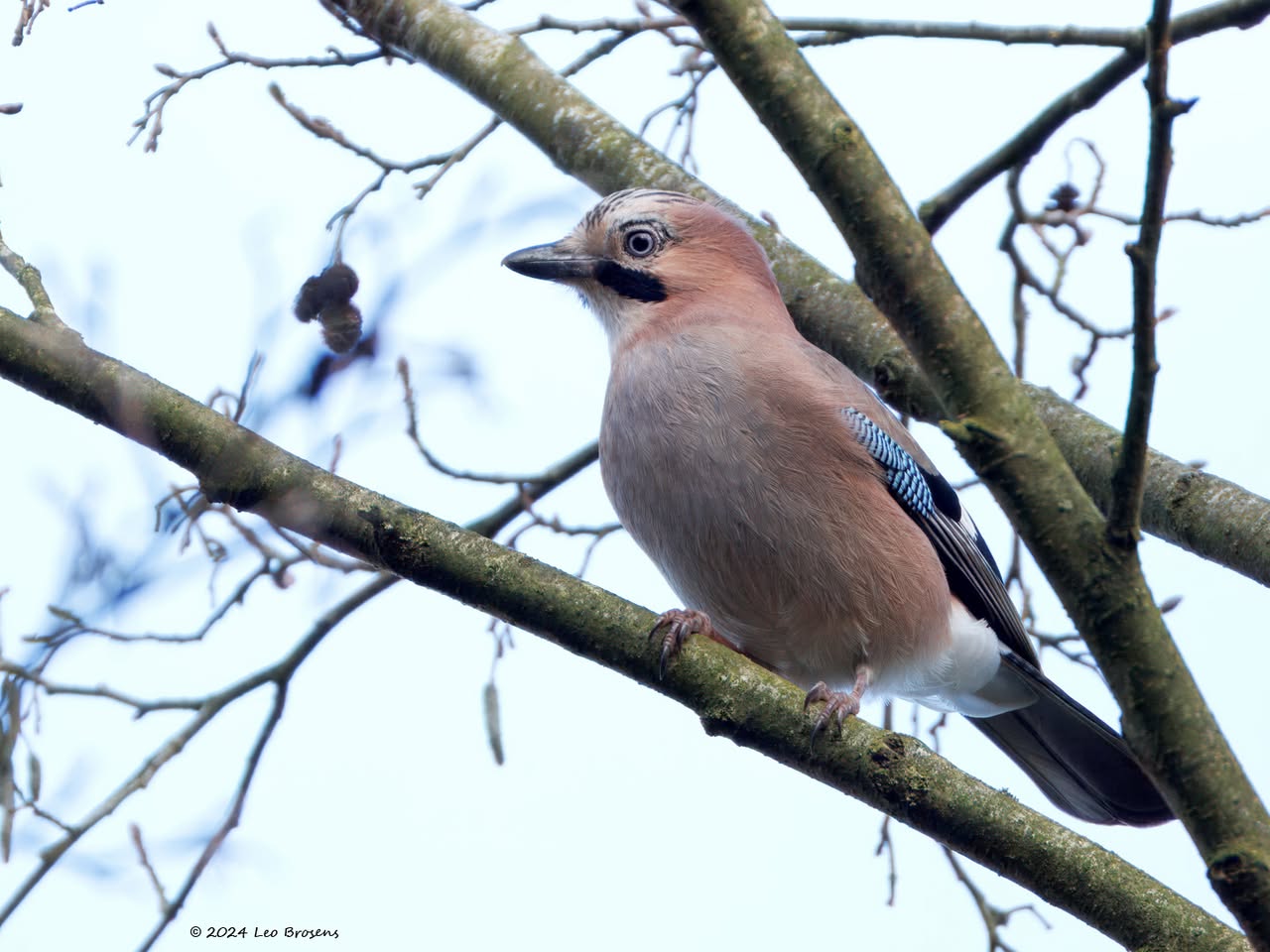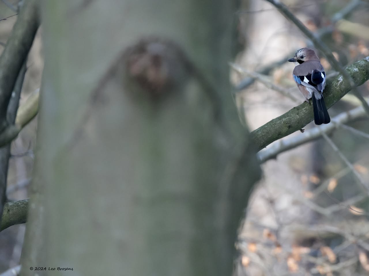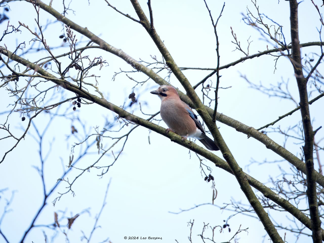 Een gaai is een mooie vogel maar ook een schuwe vogel. Je zult hem vast wel eens tegen komen als je door een bos wandelt. Ze hebben je snel in de gaten en vliegen vaak snel wat verder weg. Nog niet ze eenvoudig om er een goede foto van te maken. Gelukkig ging deze niet uit beeld achter een boom zitten en keek de gaai nog even achterom. Ondanks het kleine formaat zijn de typische kenmerken nog zichtbaar.