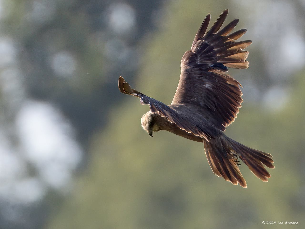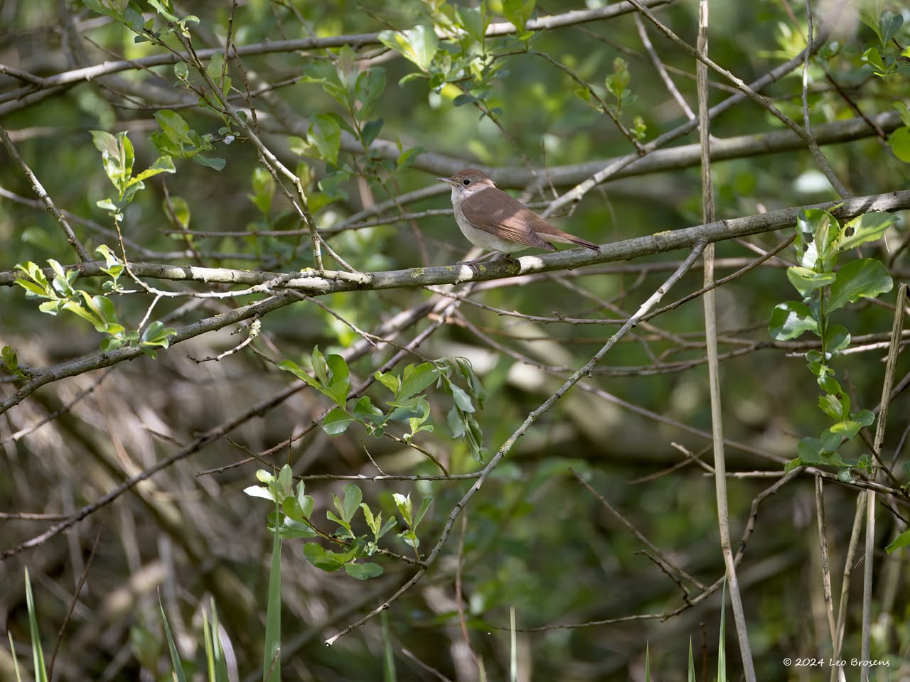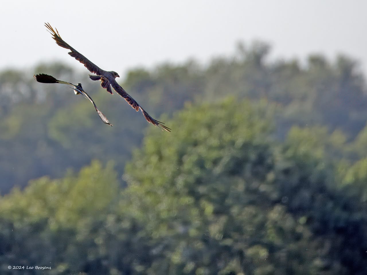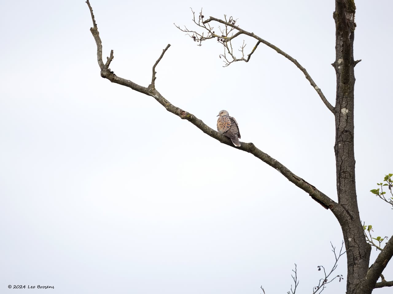 Een stukje natuur in de Pannenhoef, vanmorgen rond tien uur, met een zonnetje en met een buizerd in de top van een boom. Nog leuker wordt het als er een groep spreeuwen voor de buizerd voorbij vliegt. De buizerd vindt dat alles prima.