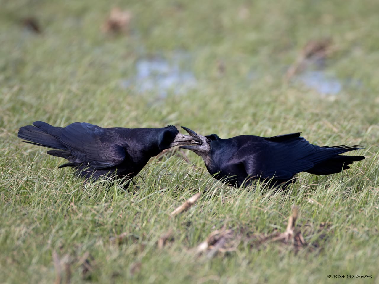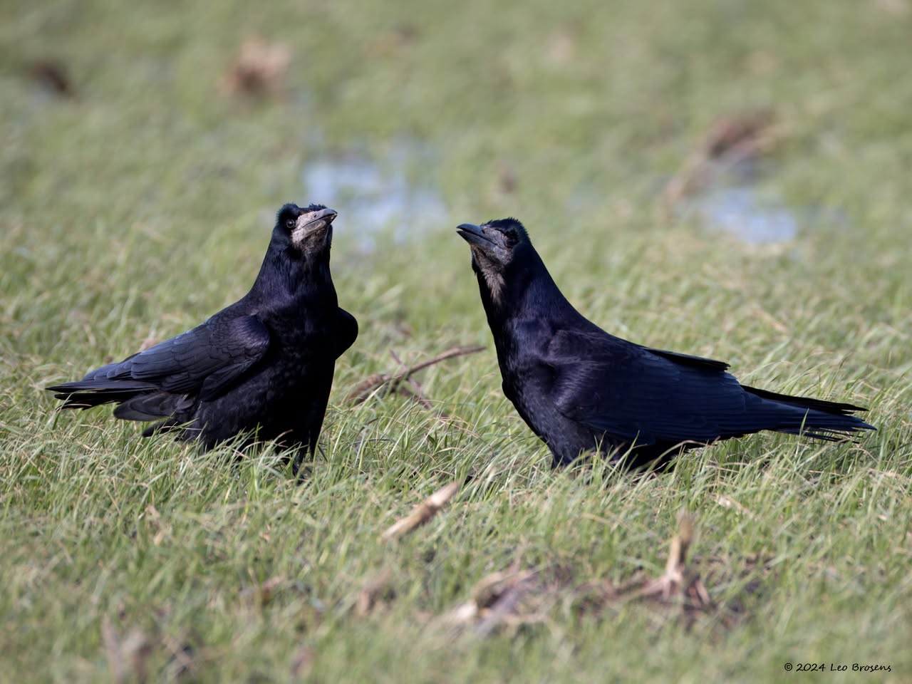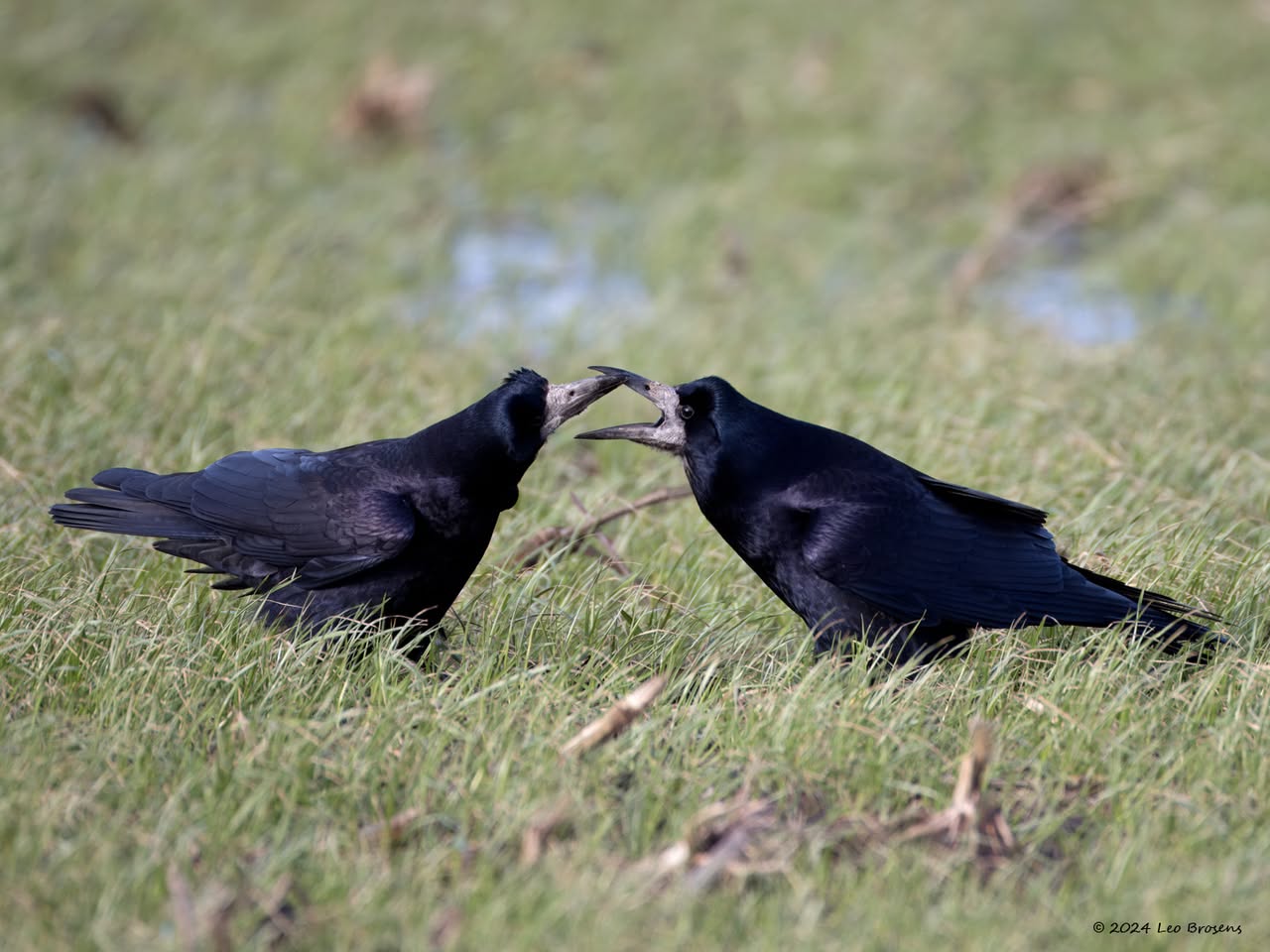 Liefde. Roeken weten wat liefde is. Eenmaal volwassen dan wordt een maatje voor het leven gekozen. Ze trouwen maar eenmaal in hun leven, het paartje blijft elkaar levenslang trouw, heel bijzonder vind ik dat! Ze onderhouden de relatie met attenties naar elkaar. Zoals ik vorige week zag gebeuren. Eerst werd ik goed bekeken in mijn auto. Ze vertrouwden me wel en er werden wat roekenwoordjes naar elkaar uitgesproken. Vervolgens biedt de een de ander een presentje aan. Wat het kado is kon ik niet goed zien. Dankbaar werd het in ontvangst genomen waarna voldaan het dagelijkse zoeken naar eten werd vervolgd.