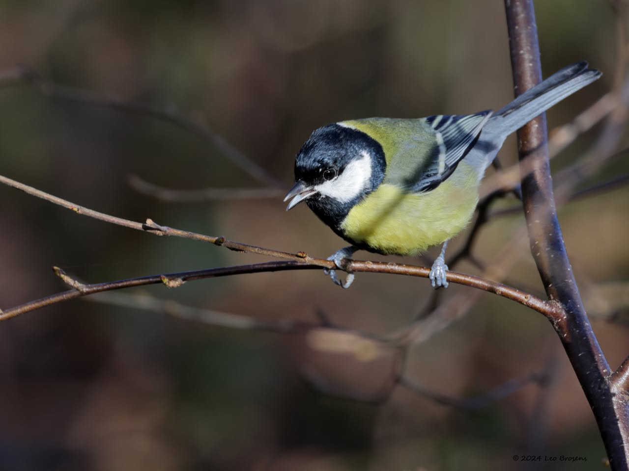 Hoe het licht valt is vaak toeval. Je kunt het wel een beetje sturen door bijvoorbeeld met slecht weer te gaan wandelen, maar ja, dat is ook niet alles. Hier aan de bosrand stond de zon laag en schuin voor de contrastrijke mees. De donkere achtergrond en de geheel onbelichte zittak heeft wel wat meen ik.