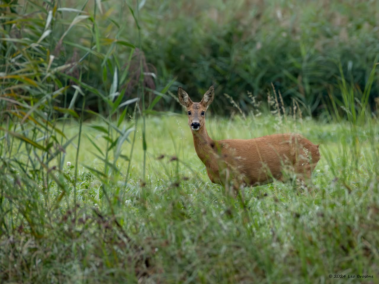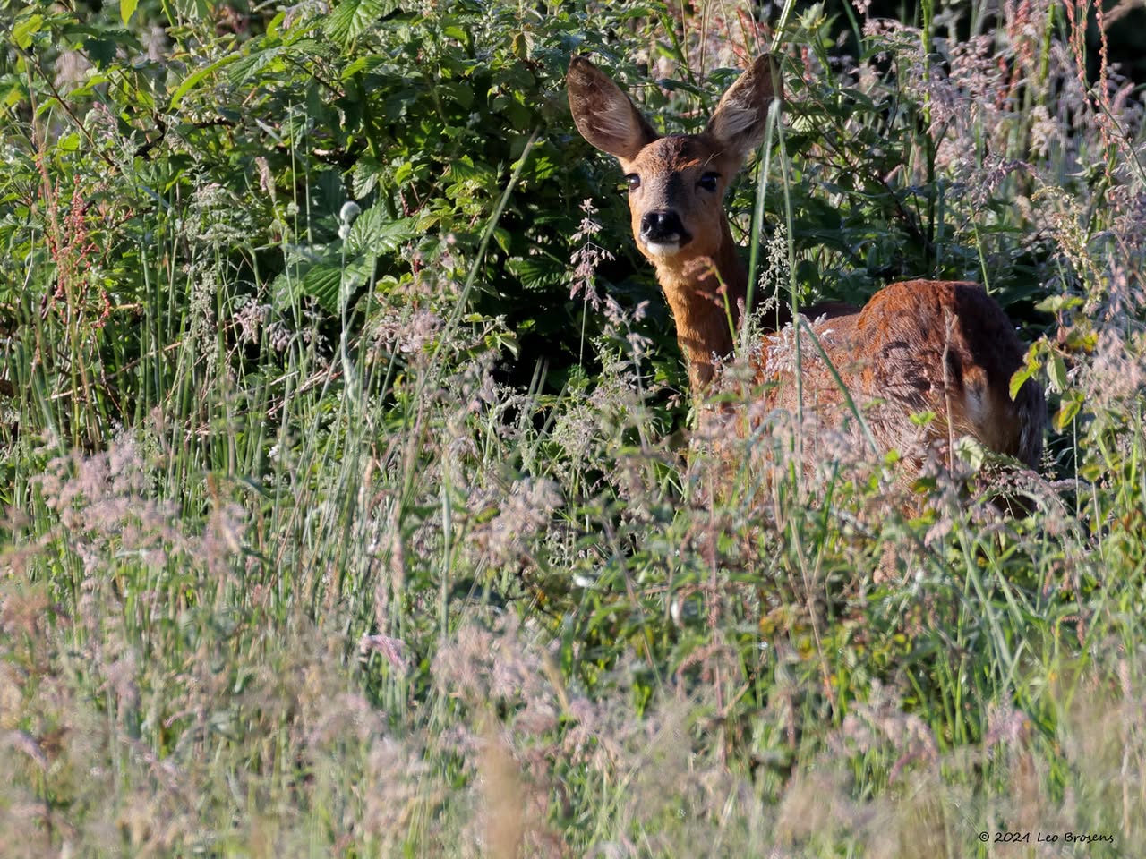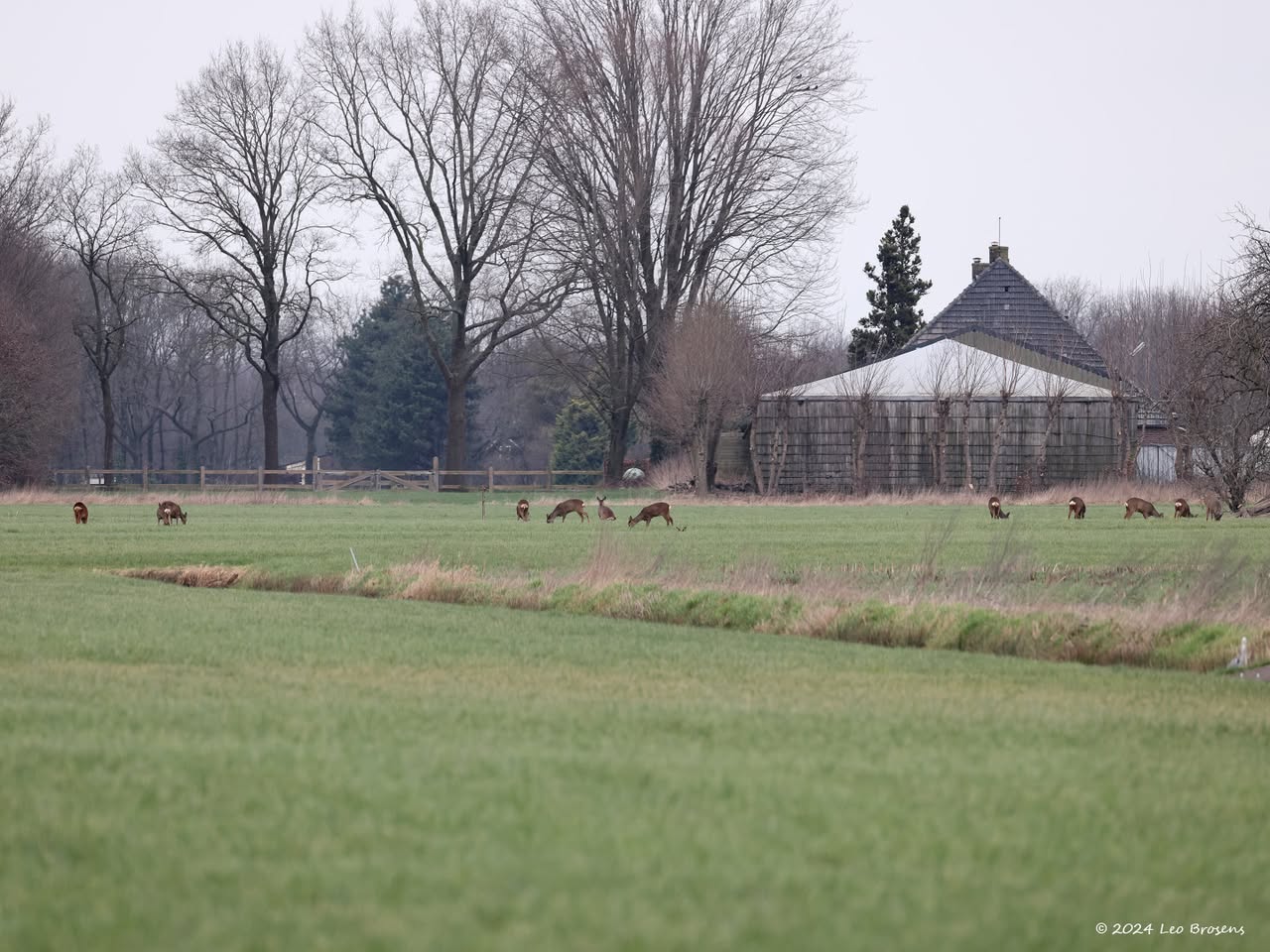 Vaak ben je al blij als je 1 ree ziet op je tocht. Vanmiddag kreeg ik er 13 op 1 foto, wel de oortjes mee tellen op de betreffende foto. Het was gewoon midden op de dag, om drie uur om precies te zijn. Wel op grote veilige afstand waardoor de buizerd ook nog even bleef zitten in de boomtop.
