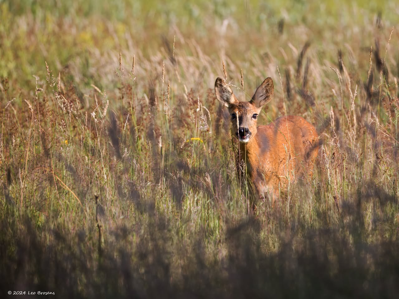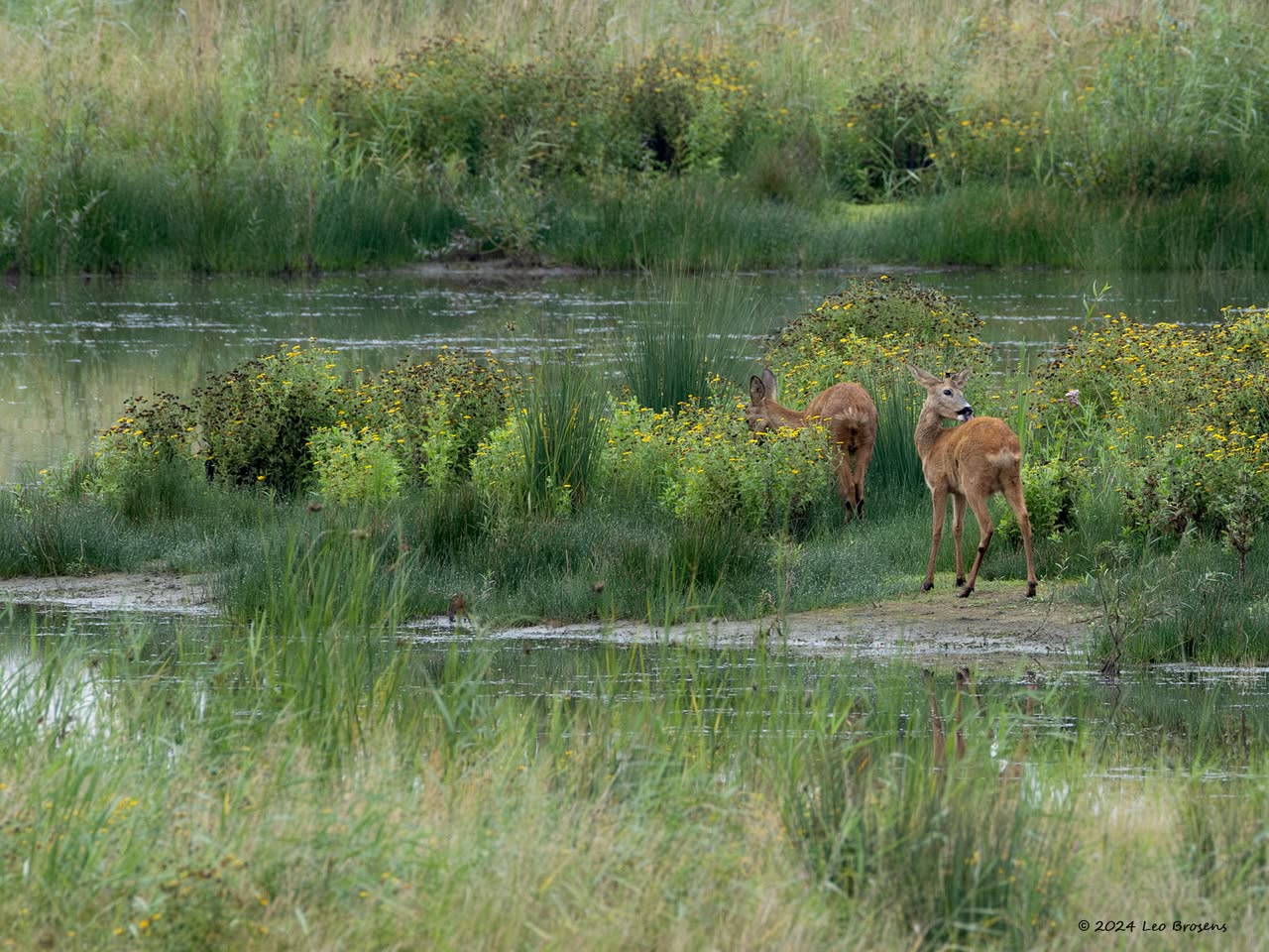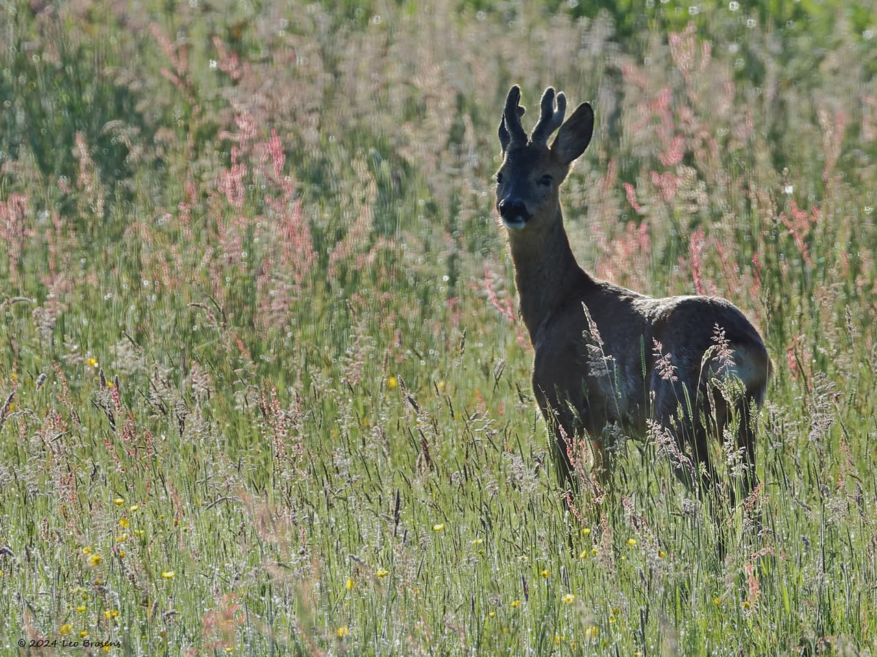Vaak ben je al blij als je 1 ree ziet op je tocht. Vanmiddag kreeg ik er 13 op 1 foto, wel de oortjes mee tellen op de betreffende foto. Het was gewoon midden op de dag, om drie uur om precies te zijn. Wel op grote veilige afstand waardoor de buizerd ook nog even bleef zitten in de boomtop.