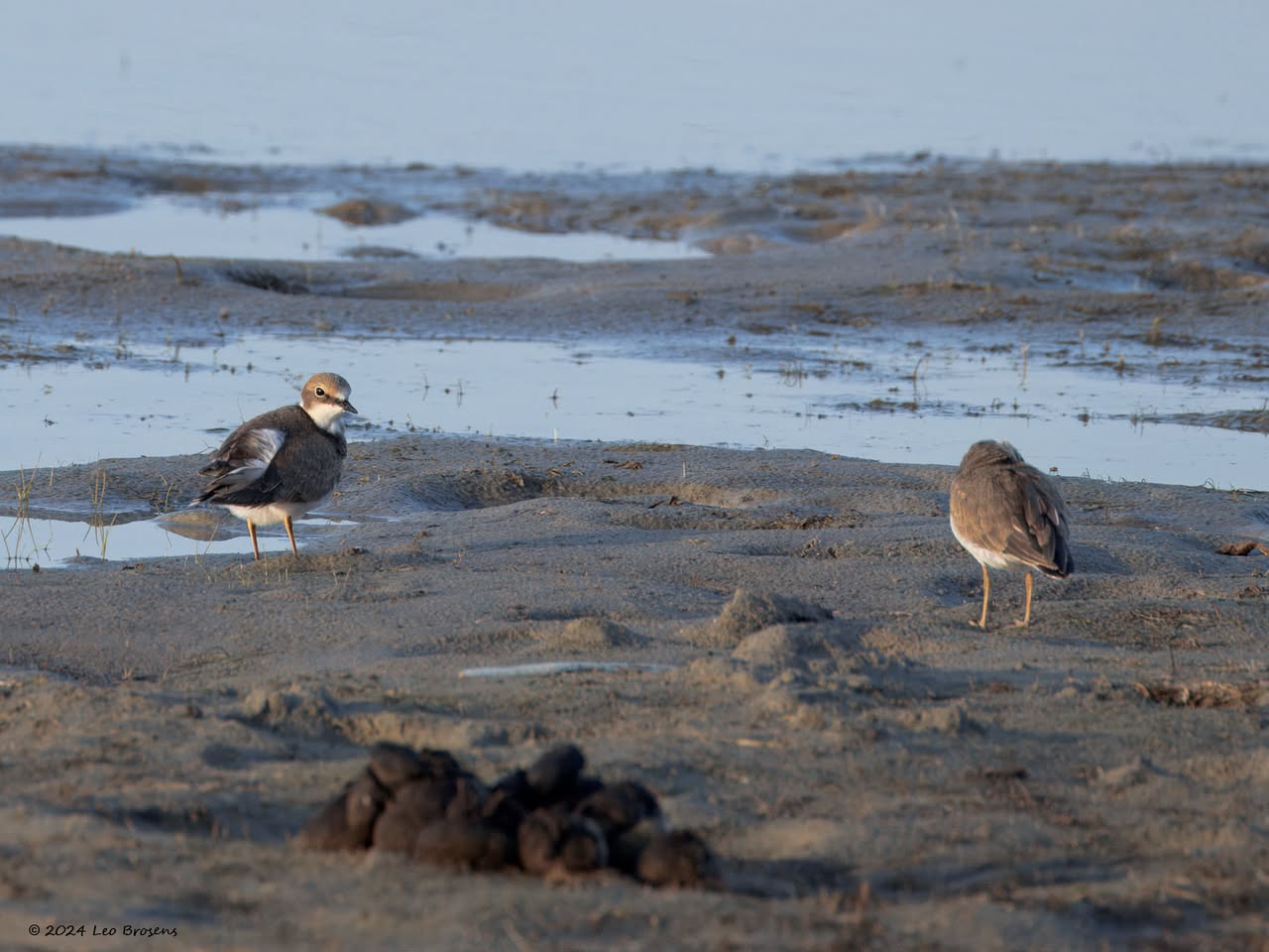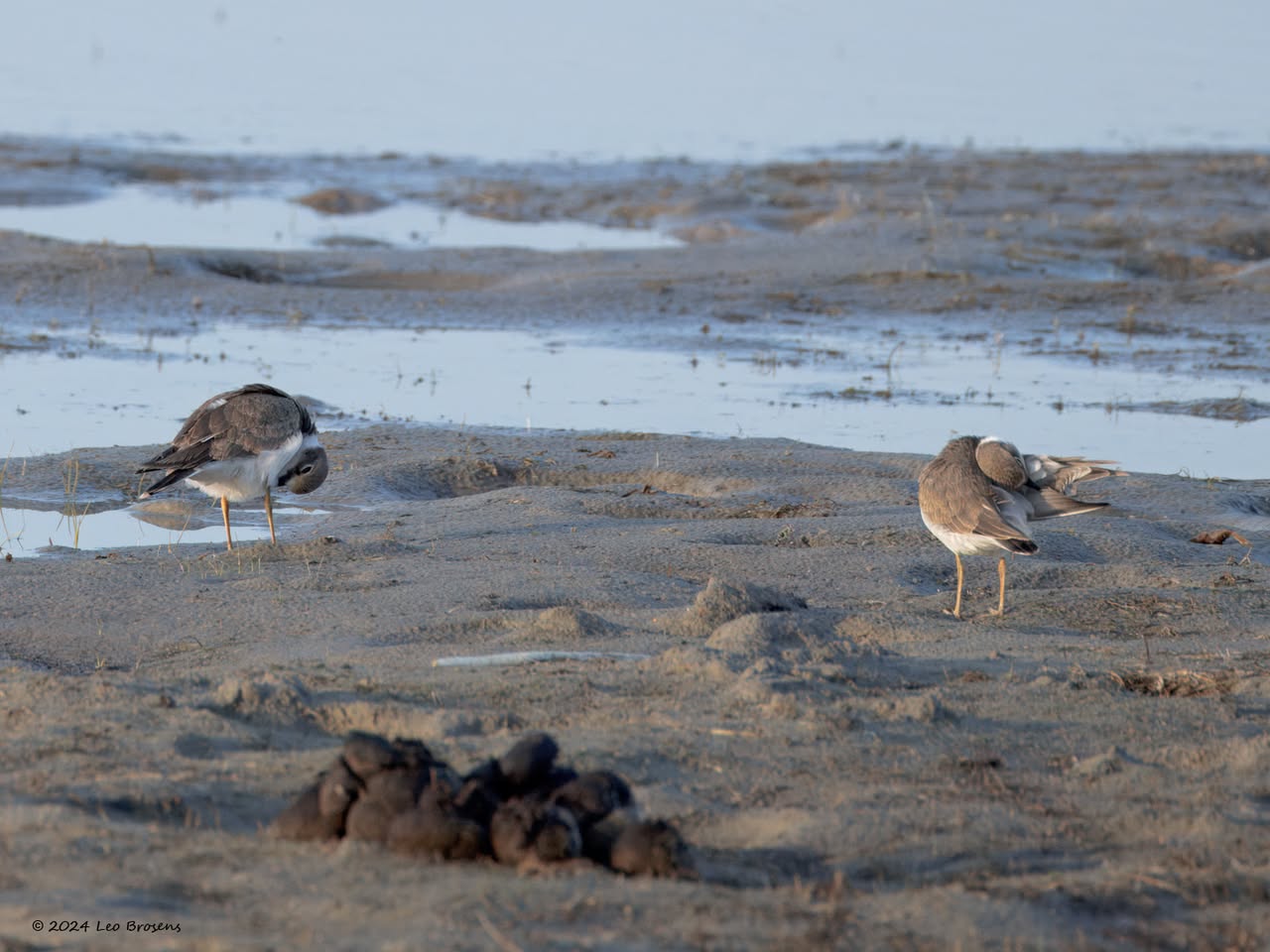 In de wintermaanden zijn veel vogels, volwassen en juveniel, minder mooi dan in de zomermaanden. Zo ook het bontbekpleviertje, vind ik toch. De jongen lijken veel op een kleine plevier maar het wit langs het oog en de gele pootjes zijn bruikbare kenmerken. Handig is ook als er nog een oudervogel meer in zomerkleed in een groepje aanwezig is.