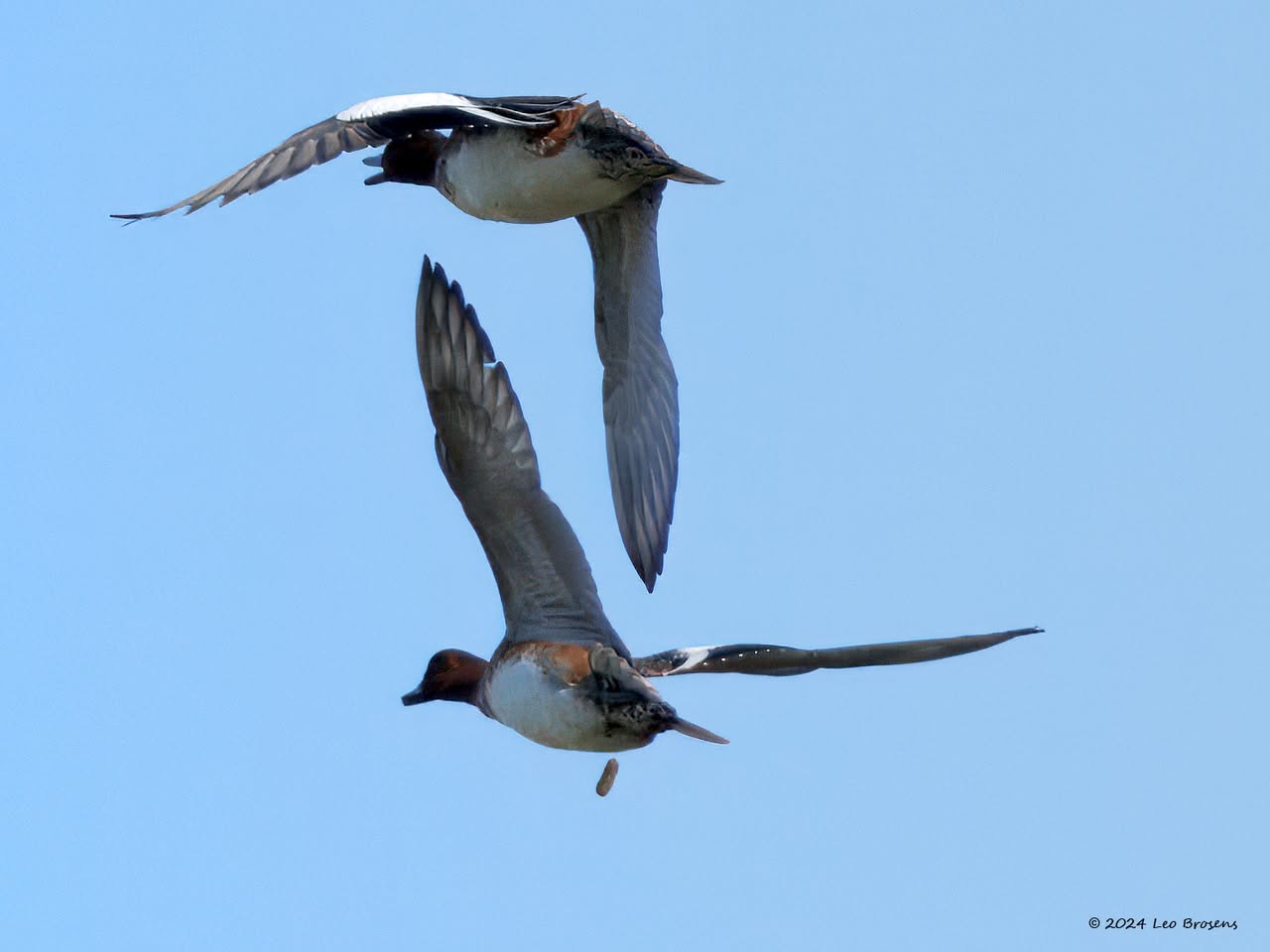 Wat er in gaat komt er in de regel ook uit. Smienten eten veel gras en nemen het restant niet graag mee in de lucht als ballast. Daarom worden er in de vlucht wel bommetjes van een soort spinazie a la creme afgeworpen. Ze zijn daar goed in.